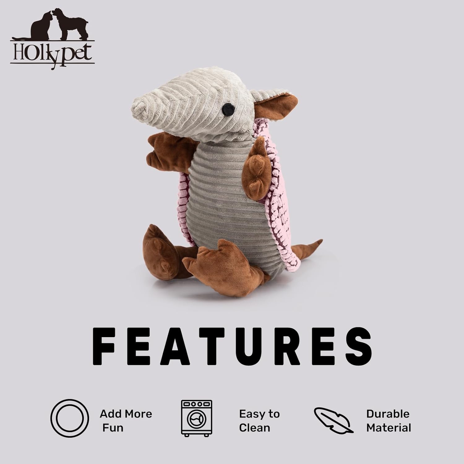- Unique Sound - Hollypet Armadillo Squeak Toys (except 6 inch) make a sound that's not high pitched, but rather a unique and funny grunt sound that your furry friend will love. Unlike noisy bones, ropes, or other normal stuffed plush dog toys