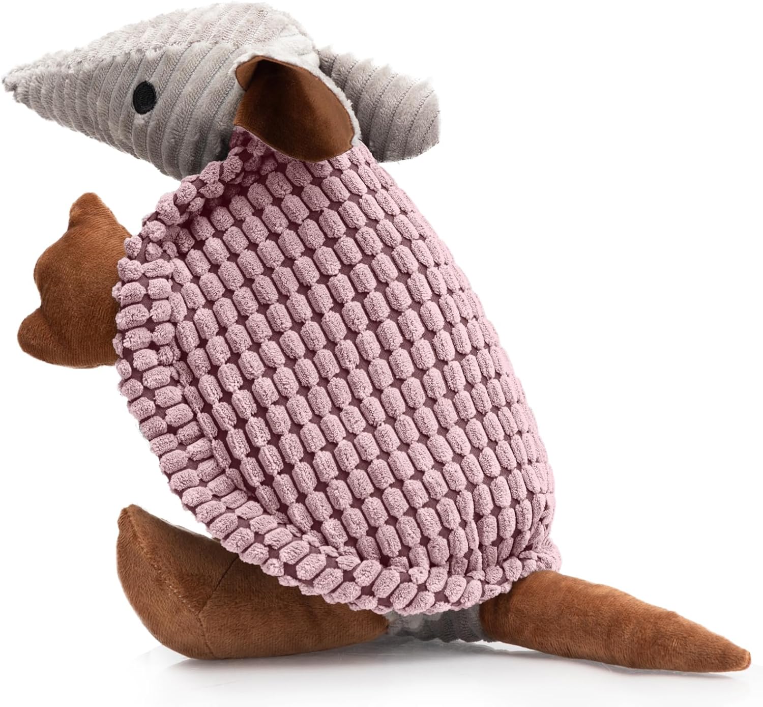 Hollypet Plush Dog Squeaky Toy Stuffed Armadillo Animal Pet Puppy Chew Toys with Clean Teeth for Small Medium Large All Breed Sizes Dogs, Pink, 14 in