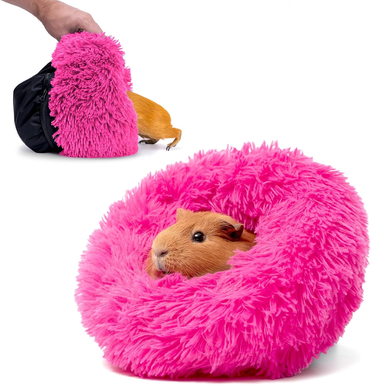 Paw Inspired Furr-O Burrowing Pet Bed with Zip-On Spandex and Fleece Bottoms for Guinea Pigs and Other Small Animals, Cozy Carrier, Hideout Enrichment Toy, Cage Accessories (Pink)