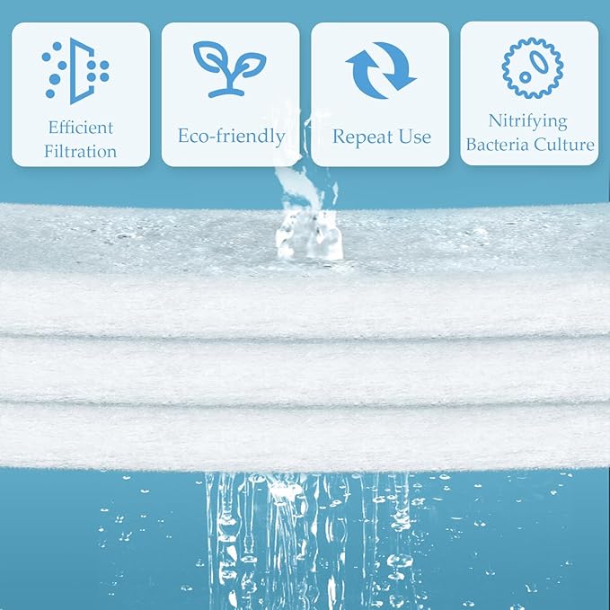 - 【HIGH EFFICIENCY FILTERING】High density fish tank filter cotton, which can effectively filter fine impurities, decompose dirt, reduce fish mortality and increase oxygen dissolution in fish tanks and aquariums.