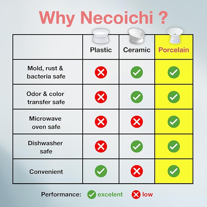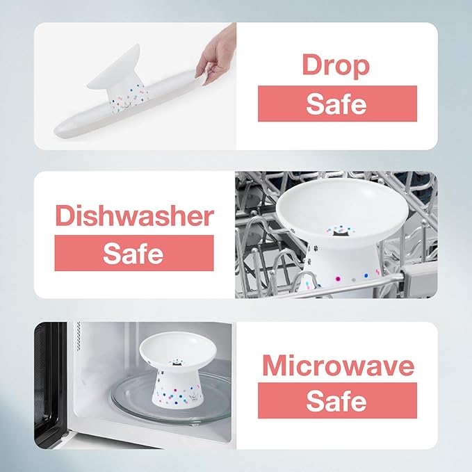 - Safe, Durable & Easy to Clean: Made from high-quality porcelain, free from lead and cadmium; meets strict US, EU and Japanese safety standards; microwave and dishwasher-safe porcelain ceramic cat bowl.