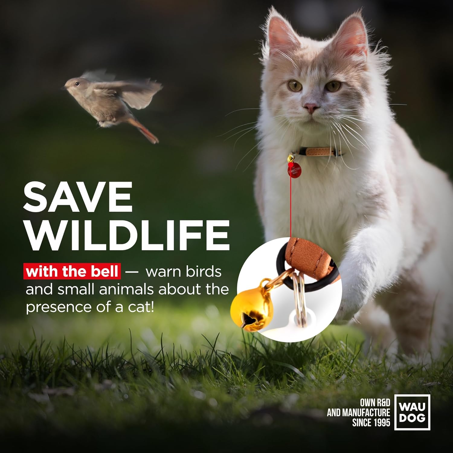 - DOES NOT RUST: Cat collar Leather with bell has metal buckle and D-ring, made of durable steel with a special wear-resistant coating that reliably protects leather kitty collar from rust.