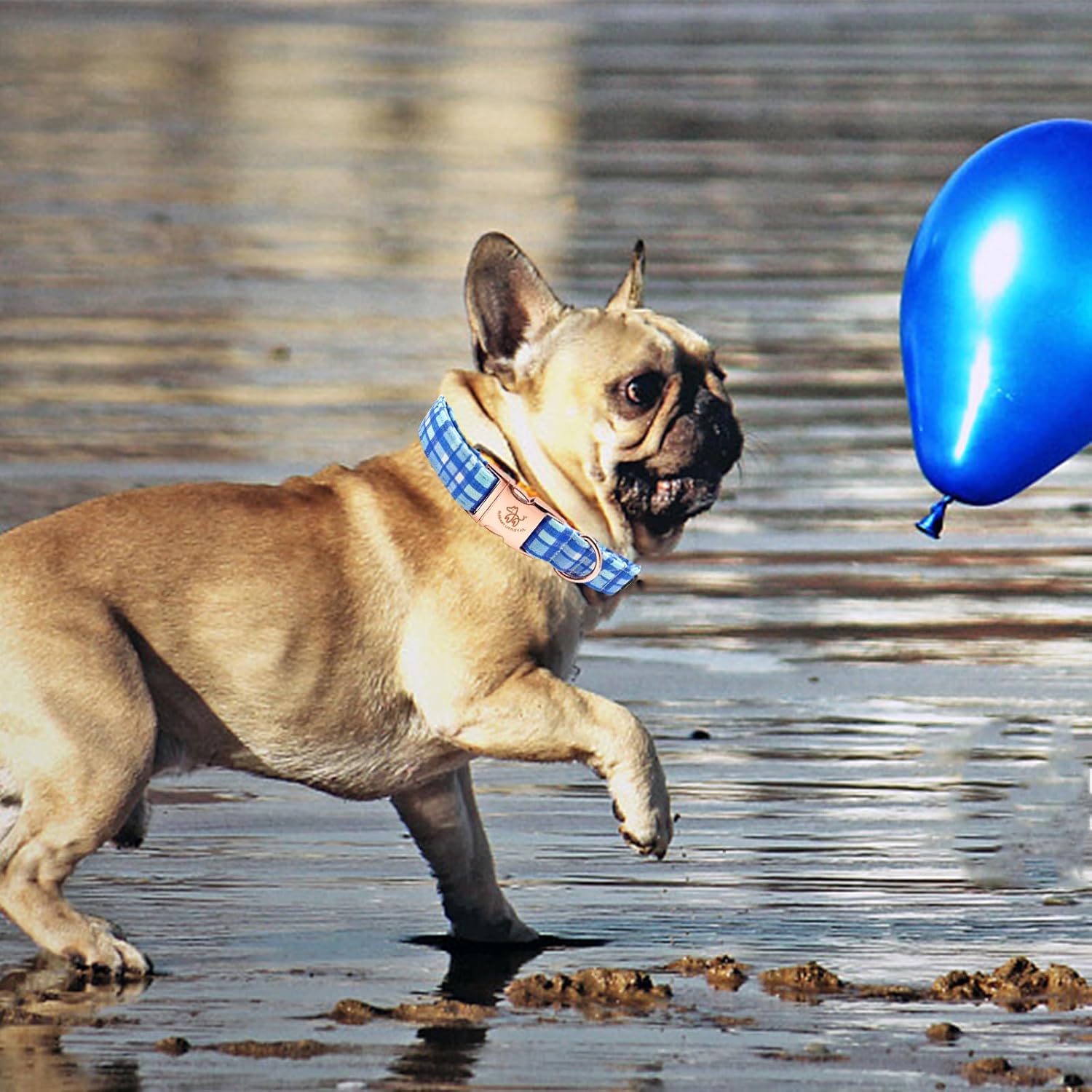 Elegant little tail Dog Collar, Blue Plaid Pattern Pet Collar Durable Cute Dog Collars Male or Female Pet Gift Adjustable Dog Collar for Small Dogs