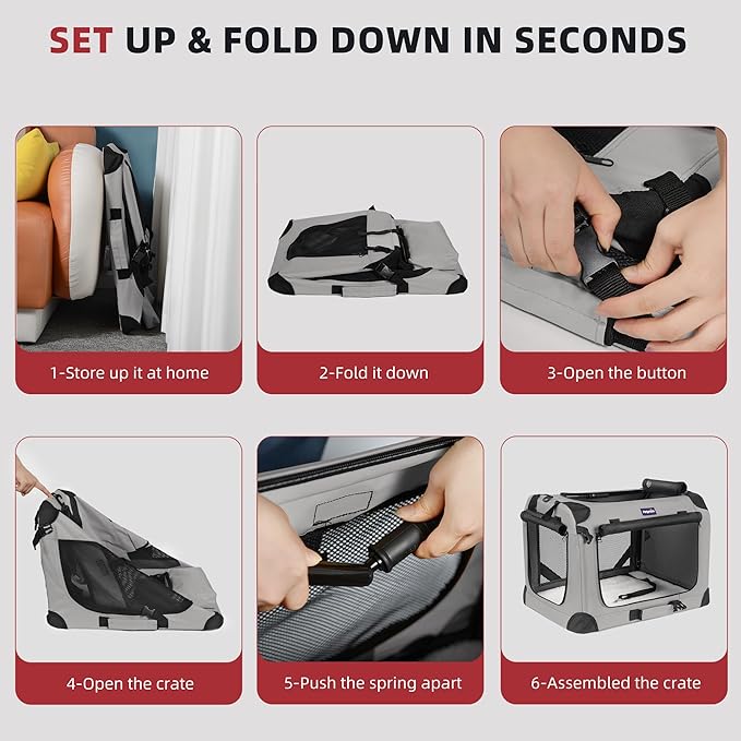 - 【Multi-Function and Great for Travel】You can use it as a crate at home or a car seat in a car. Of course, if You have an SUV, it can also be used in the trunk. Let your pet follow you on a happy and relaxing trip or carry your pet to see a doctor easliy.