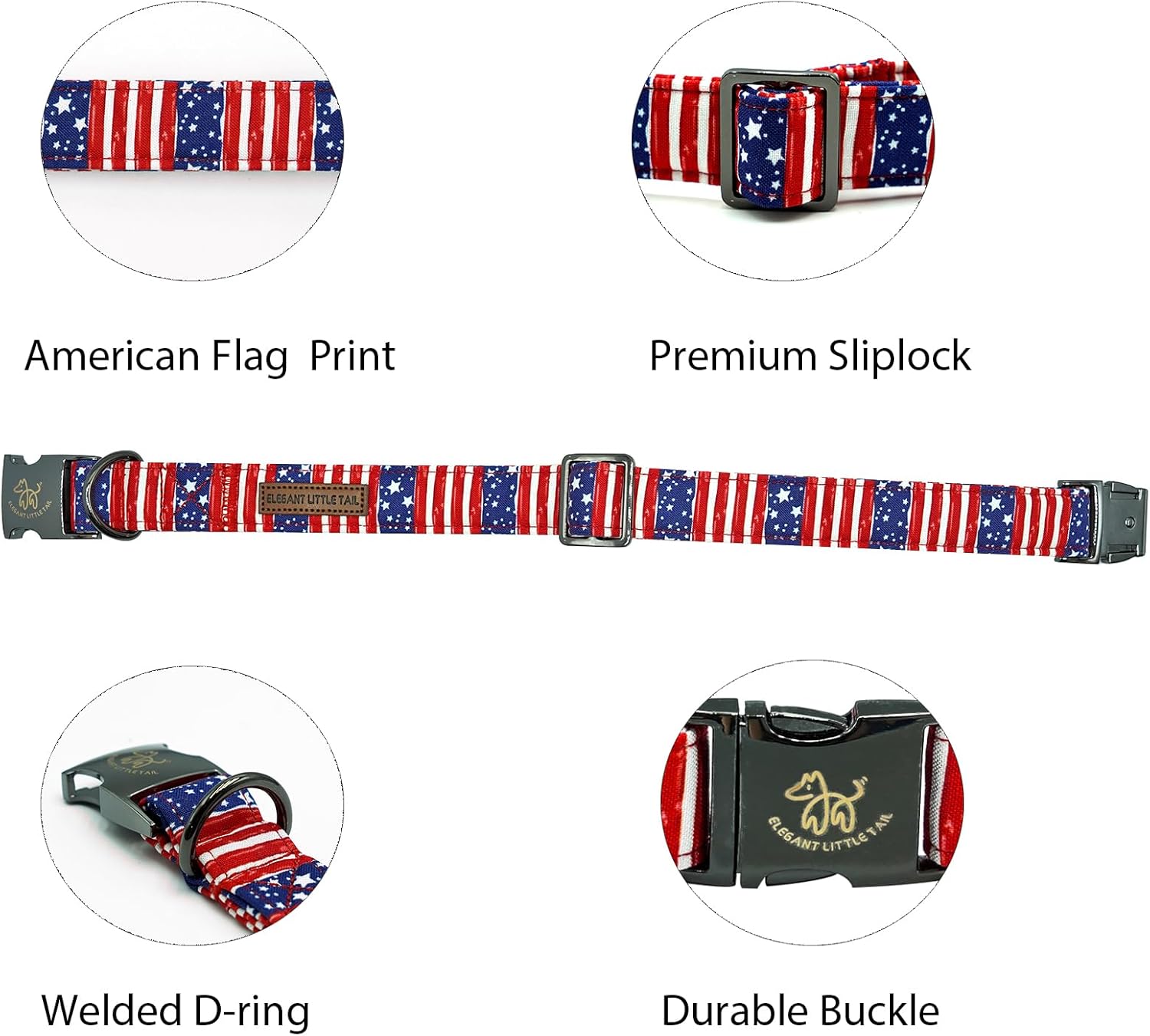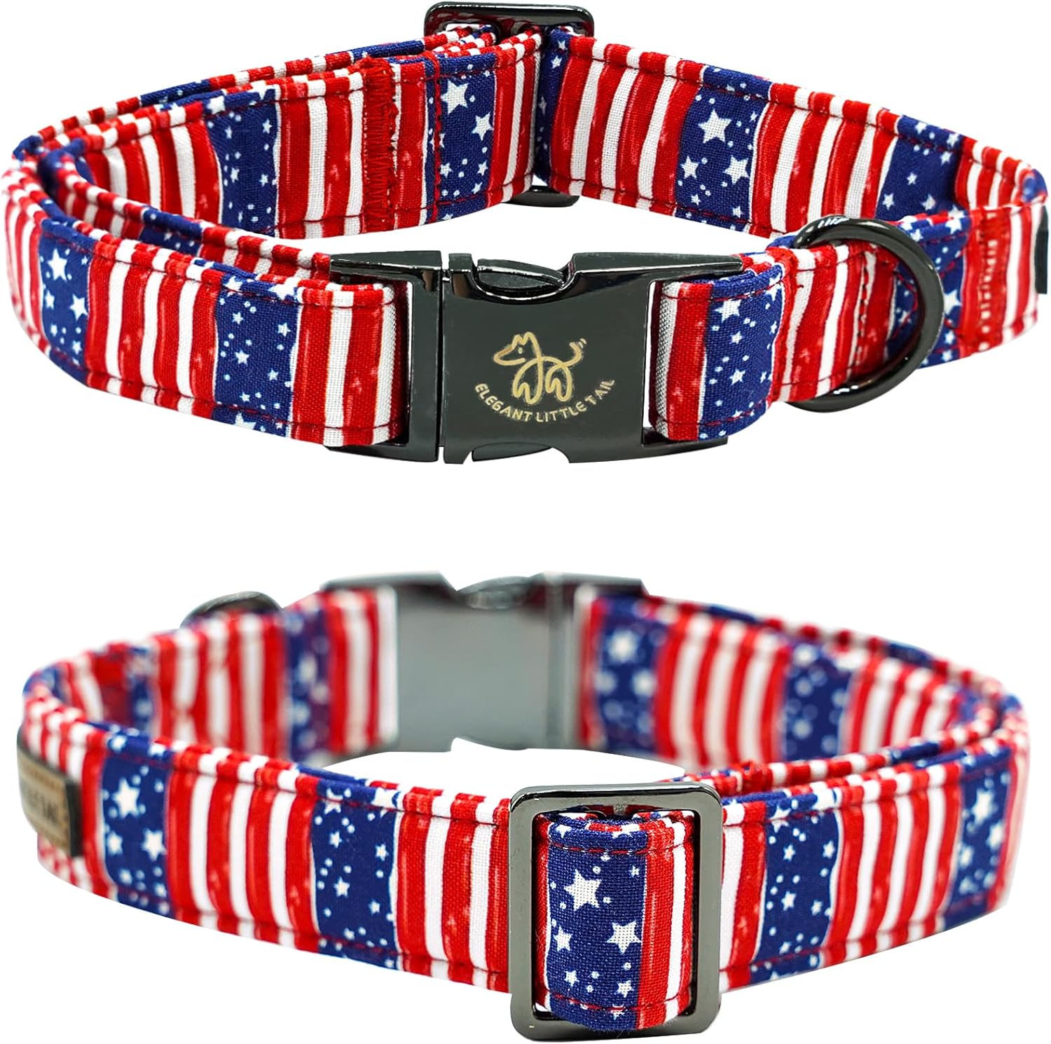 Elegant little tail Independence Dog Collar, Holiday Pet Collar Patriotic Dog Durable Dog Collars Girl or Boy Soft Pet Gift Adjustable Dog Collar for Small Medium Large Dogs