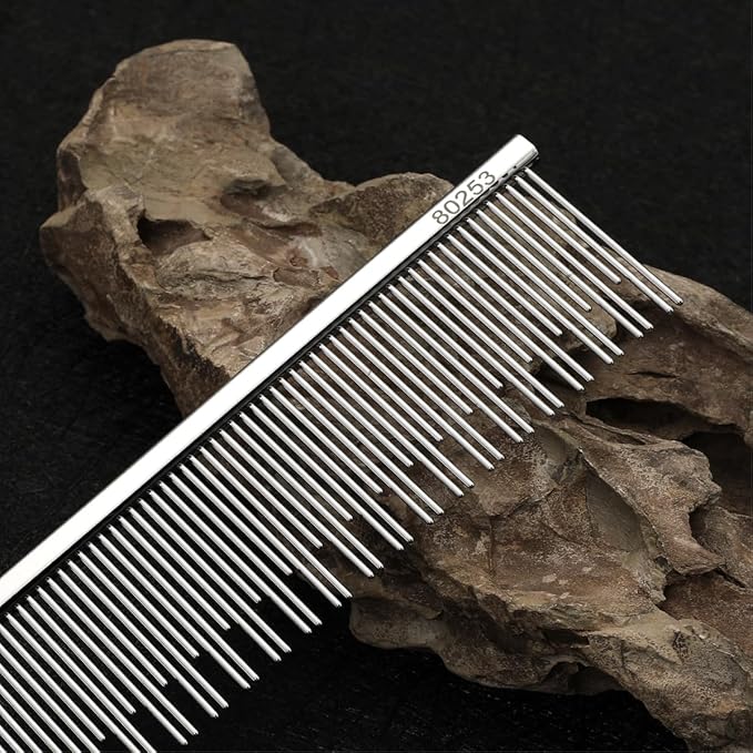 - ๐ถSTAINLESS STEEL COMB 6.1 in: Made of sturdy and corrosion-resistant stainless steel, this comb can reduce static electricity and will not fade over time. Built to last through multiple grooming sessions.
