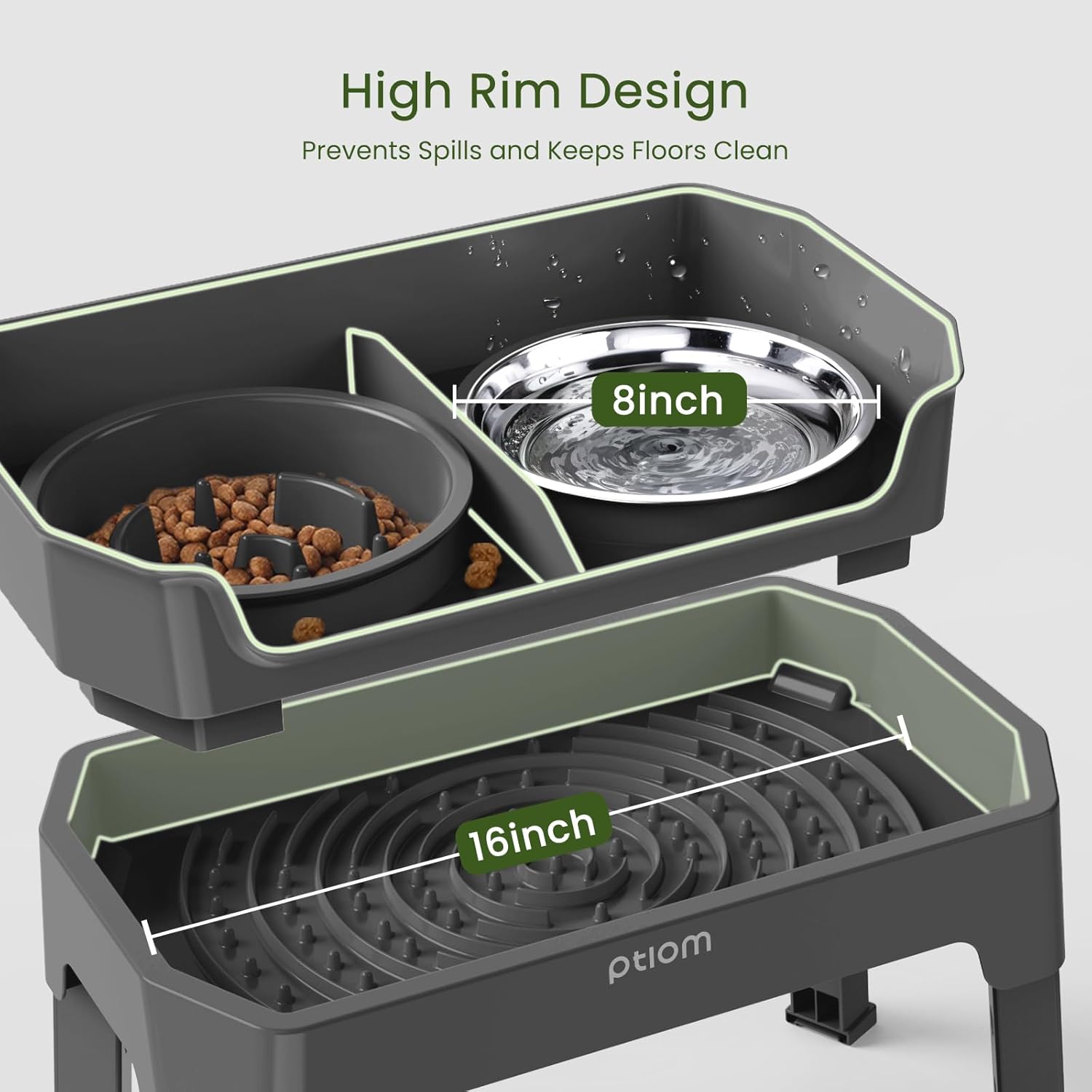 - 4-IN-1 ELEVATED DOG BOWLS: Our upgraded raised dog bowl can adjust height, has a liftable extra-large lick plate with slow feeder functionality. Excellent spill and mess protection. Slow feeder and water bowl set ideal for medium and big dogs or families with multiple pets.