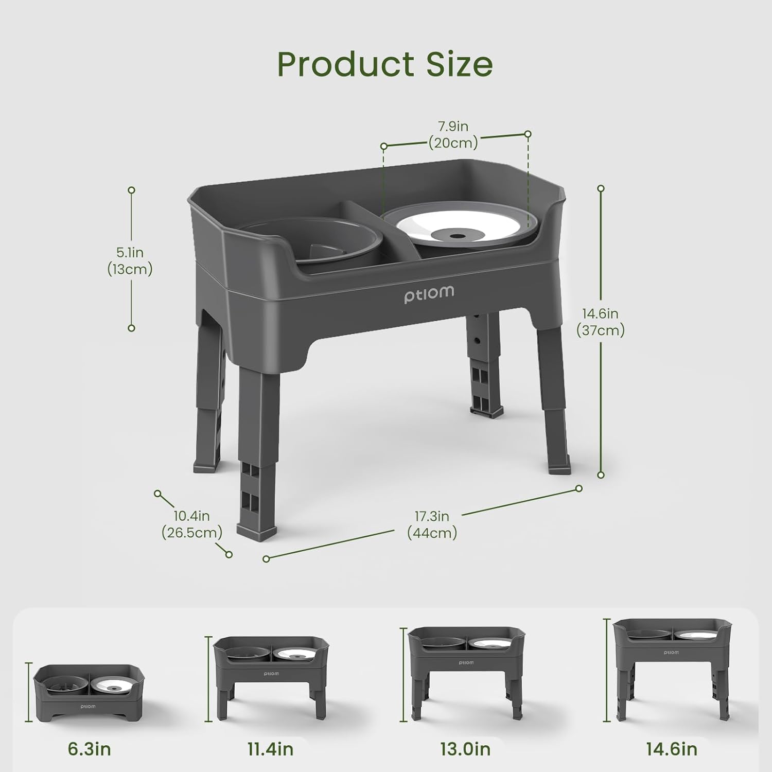 - REDUCE JOINT STRESS: KPWACD elevated dog bowls with stand can be adjusted 4 heights - 6.3"; 11.4"; 13" and 14.6 inches. The ergonomic design helps pets eat more comfortably and improve digestion. Friendly to large dogs, elderly dogs, dogs have joint health.