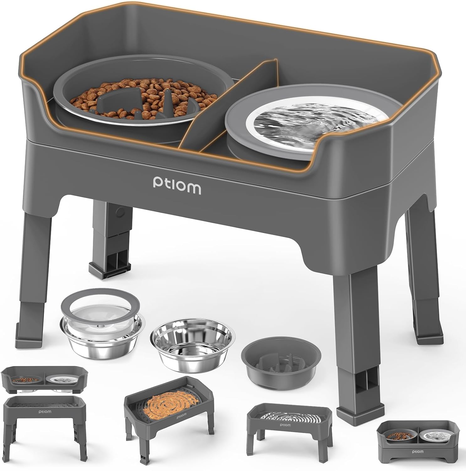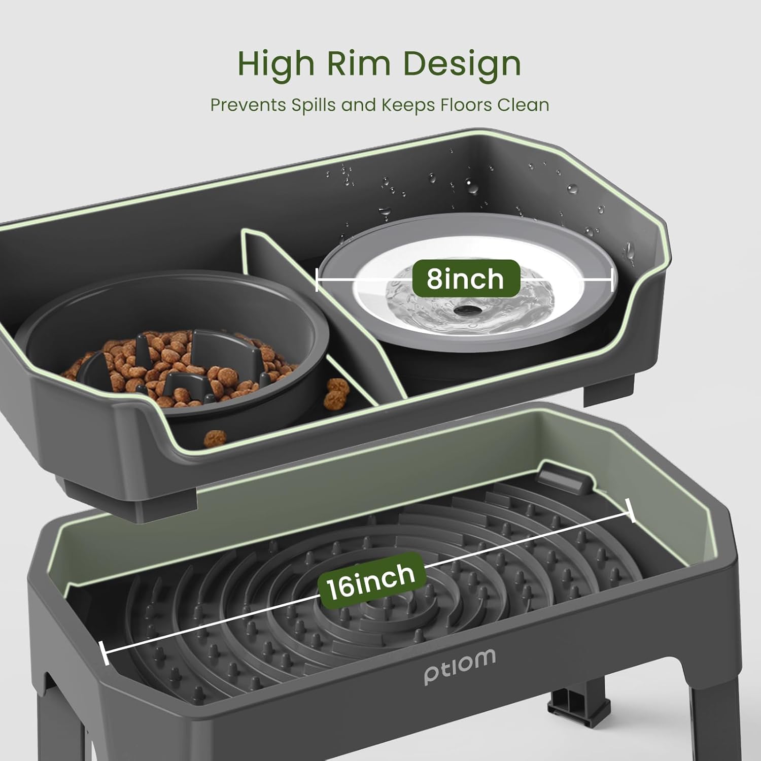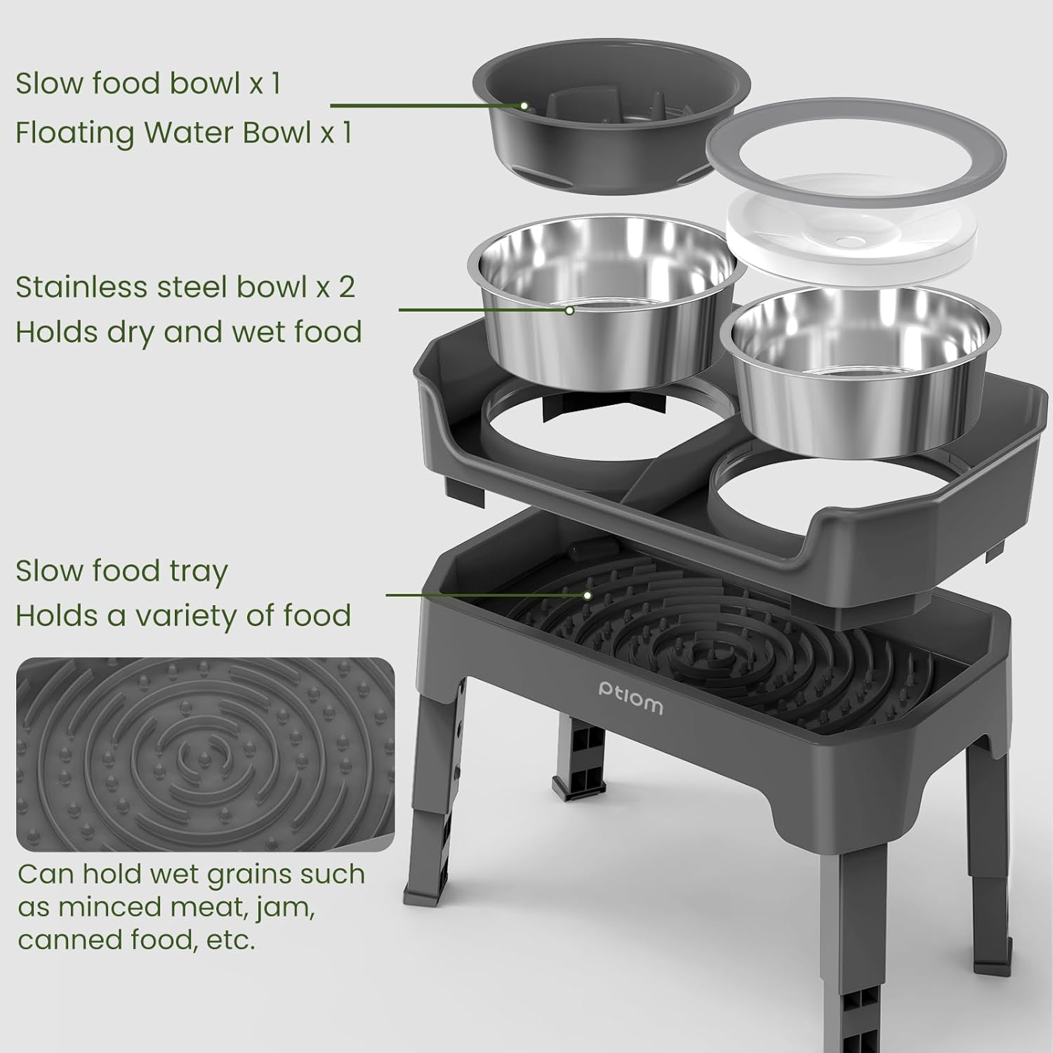 - 4-IN-1 ELEVATED DOG BOWLS: Our upgraded raised dog bowl can adjust height, has a liftable extra-large lick plate with slow feeder functionality. Excellent spill and mess protection. Slow feeder and water bowl set ideal for medium and big dogs or families with multiple pets.