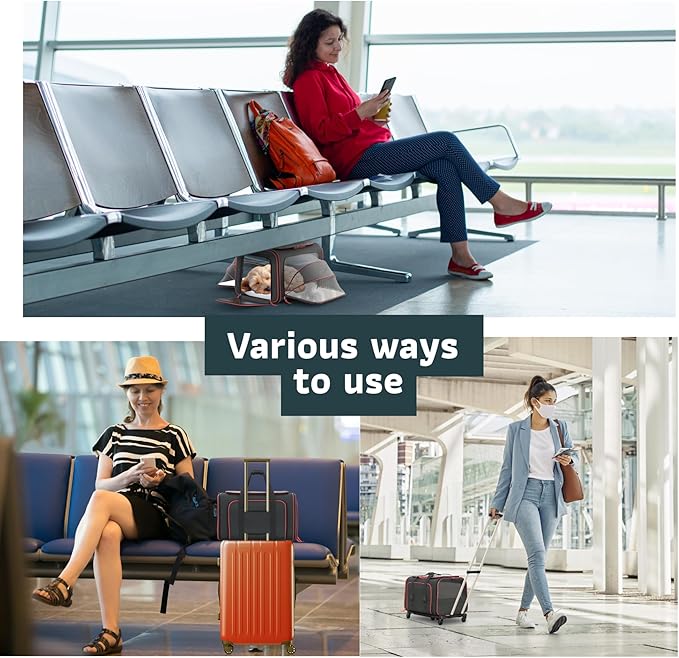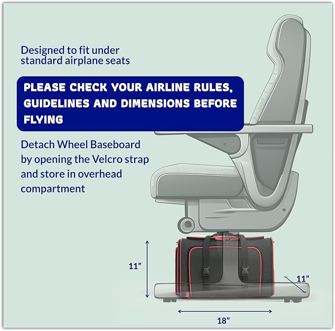 - AIRLINE Compliant: Made to fit under the front seat on most airlines. Please Check your airline's rules before you buy. It has a strap and handle to attach to your suitcase for easy moving around. Your pet can stretch out during car rides and under the seat on the plane