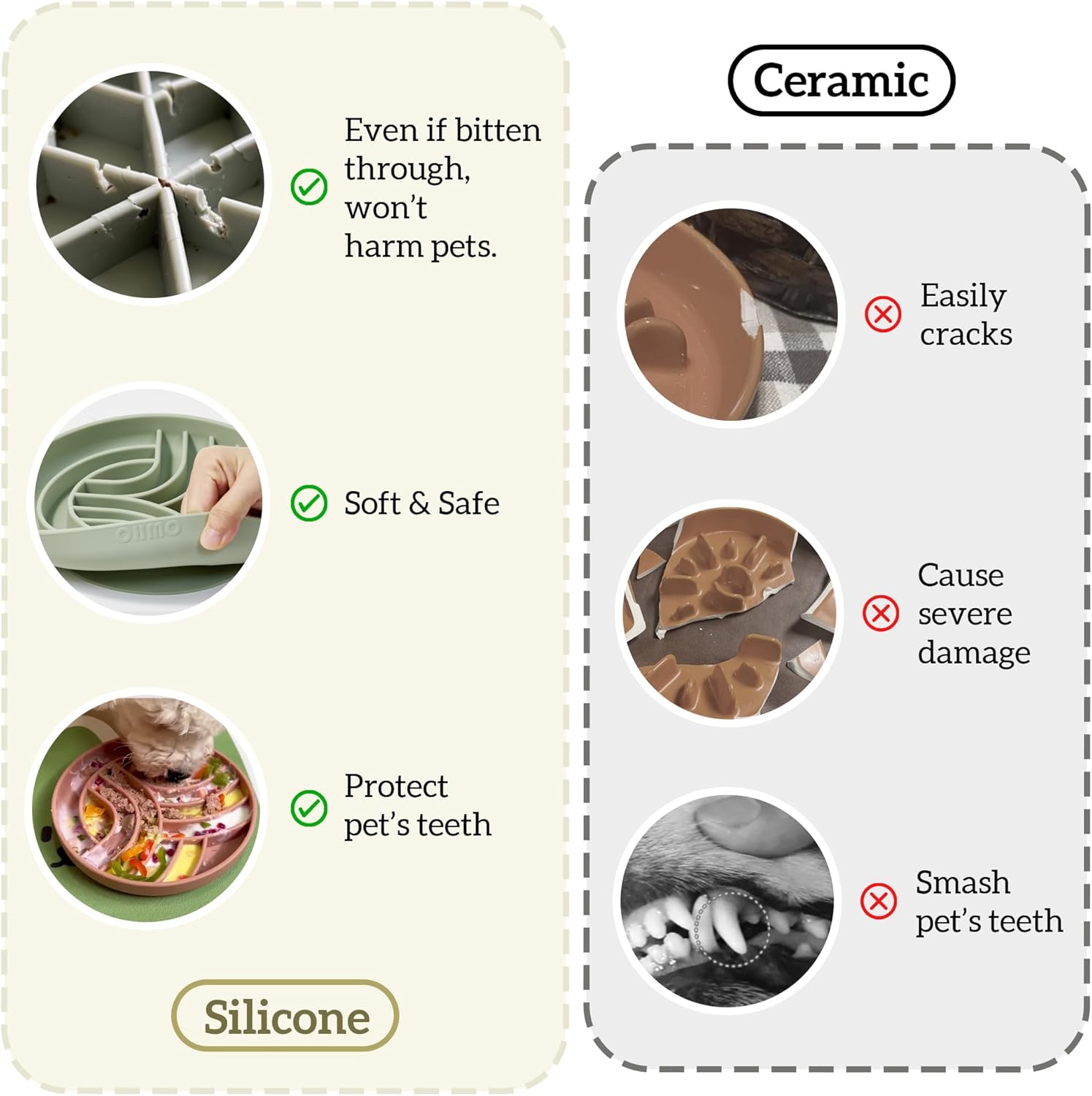 - Clean the slow feeder with water or dishwasher is convenient. Unlike plastic and ceramic bowls, the silicone bowl is hard to break and does not deform easily.
