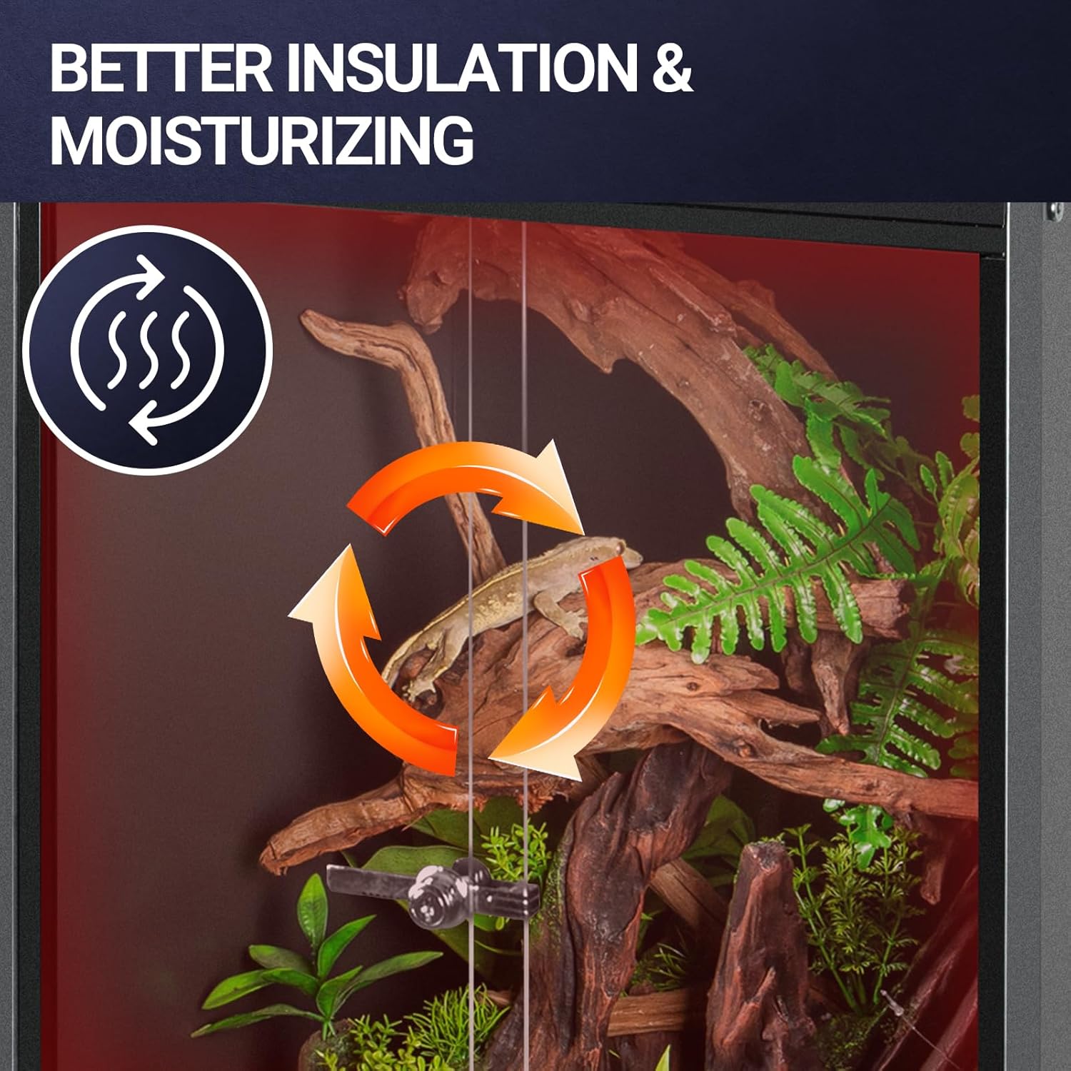 - 【Excellent Moisture-Resistant】: Compared to Wooden Terrarium , PVC material boasts exceptional moisture resistance and fire resistance, which can maintain good performance even in humid environments. Very suitable for high-humidity reptile needs, such as ball pythons, bearded dragons, snakes, geckos, lizards, blue tongued skin, chameleons and tarantulas