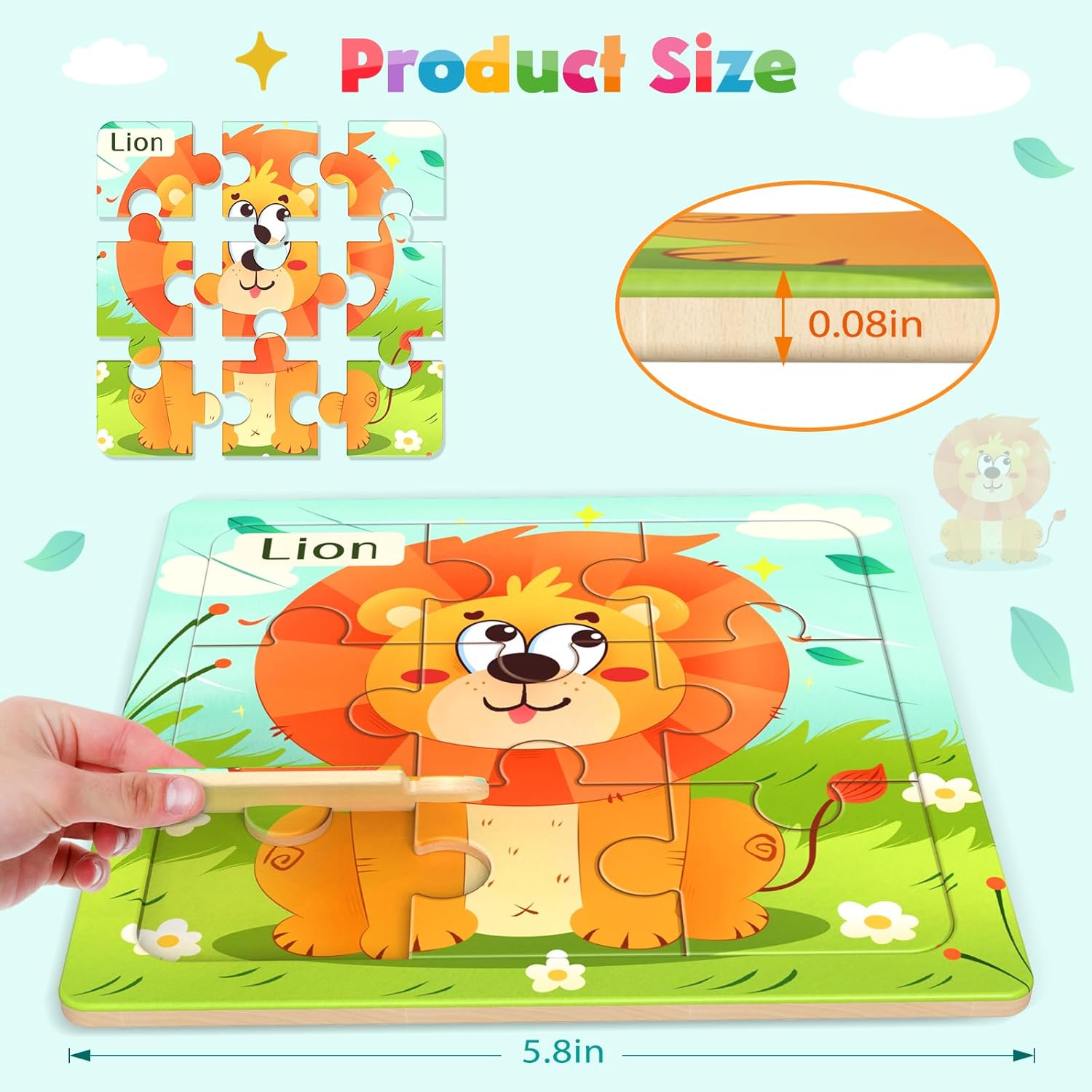 Wooden Puzzles for Toddlers, 8 Pack Animal Jigsaw Puzzles for Kids3-5, 9 Pieces Preschool Learning Activities, Learning & Educational Toys, Gift for Boys, Girls
