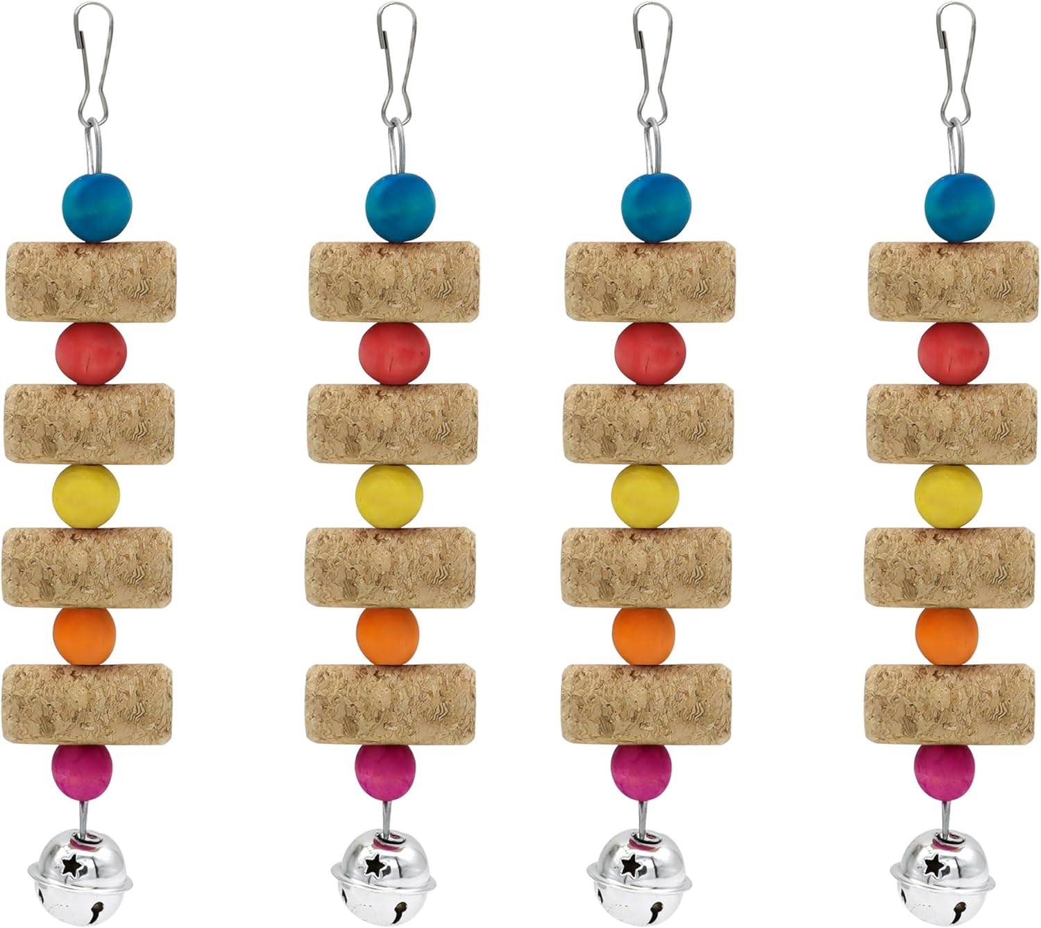 - [Cockatoo Bright Color Toys] Colorful beads between cork and the bell on the bottom attract parrot's attention, reduce loneliness, great for parrot's psychological wellness.