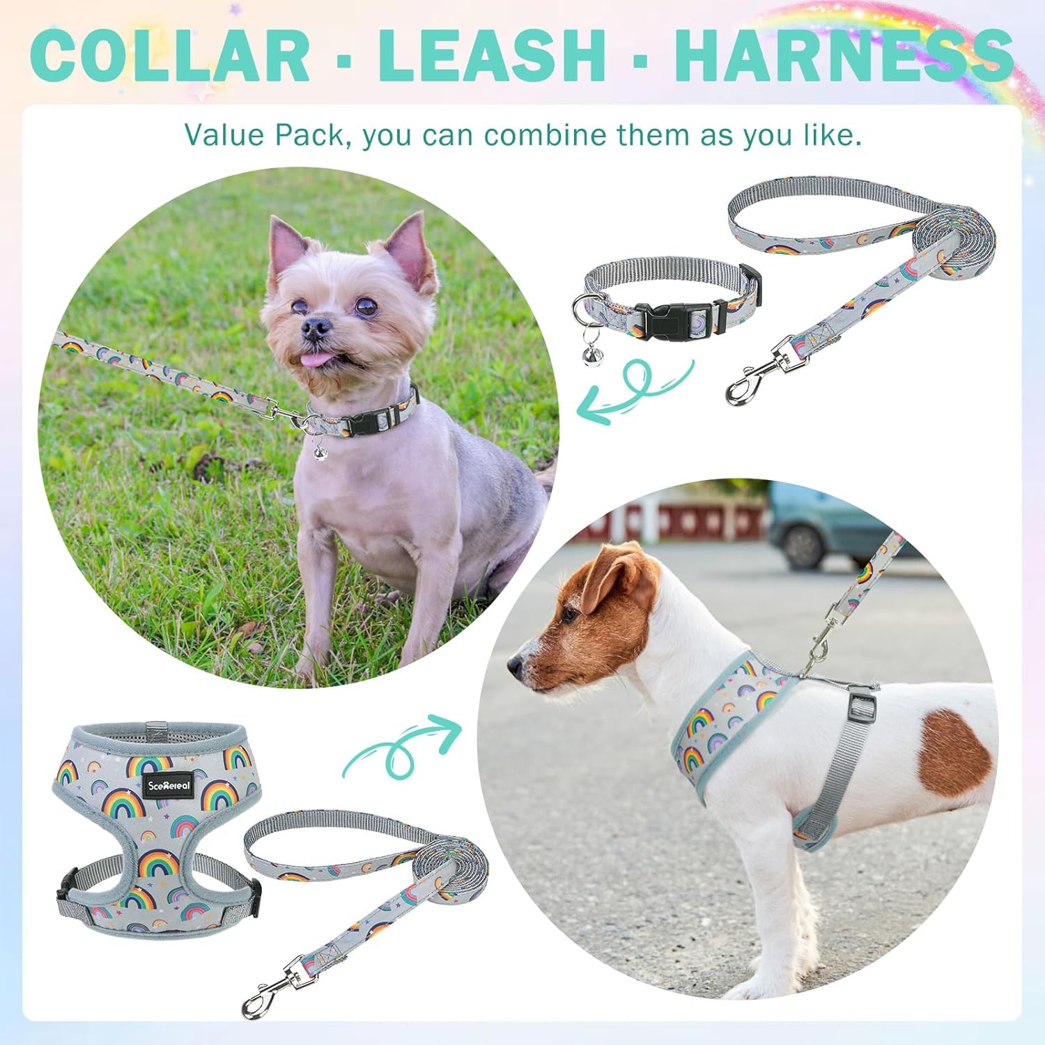 SCENEREAL Small Dog Harness Collar and Leash Set, Adjustable No Pull Pet Harnesses, No Chock Soft Mesh Step in Vest for Doggie Puppy Medium Dogs Cats Girl or Boy,Chihuahua, Yorkie, Outdoor Walking