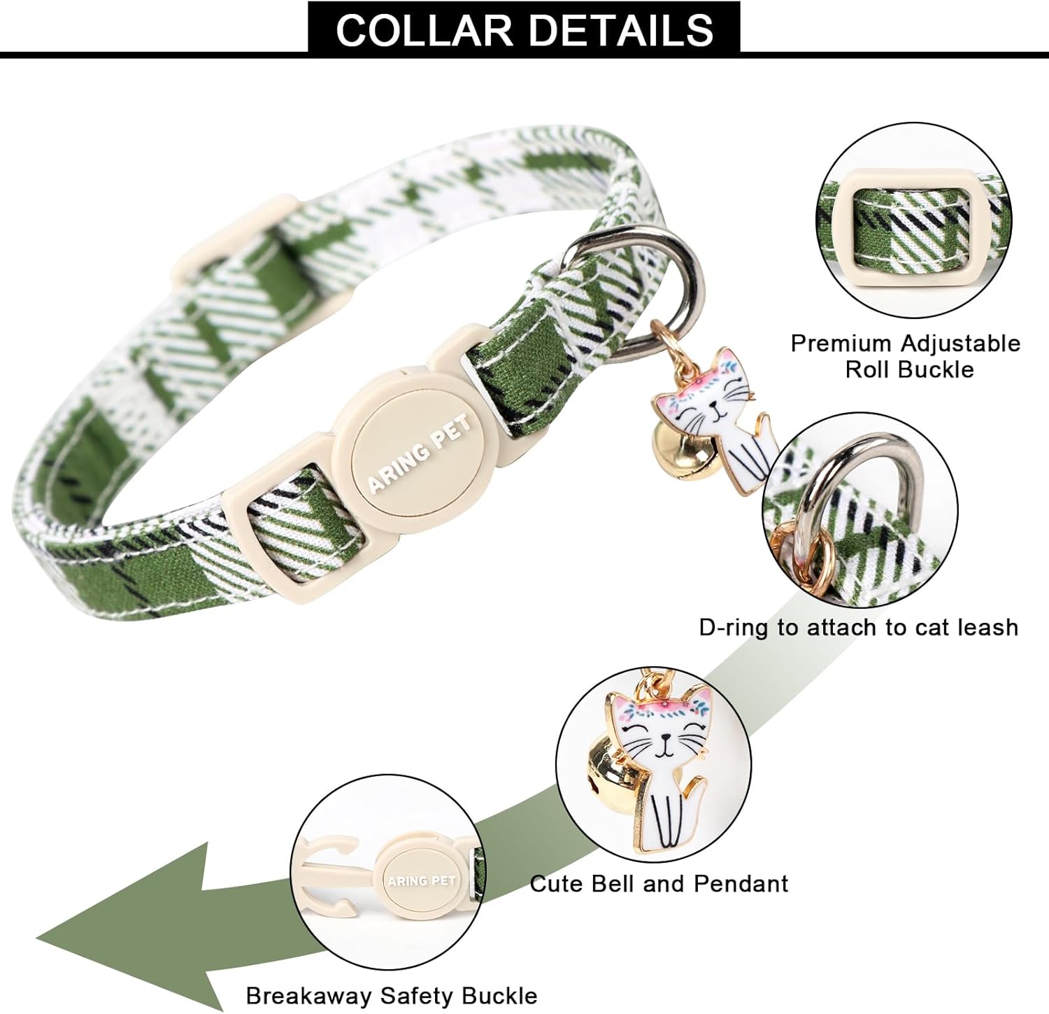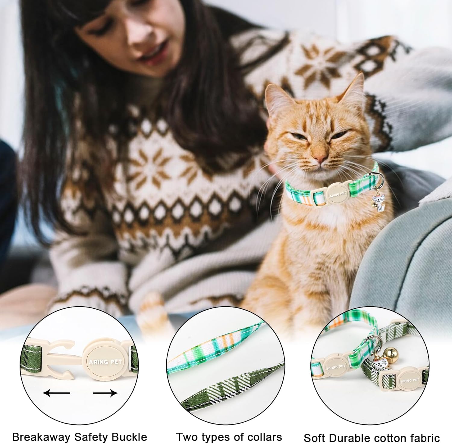ARING PET 2 Pack Cat Collar-Cute Cotton Cat Collar with Bell & Pendant, Adjustable Spring Kitten Collars with Safety Buckle for Girl and Boy Pets