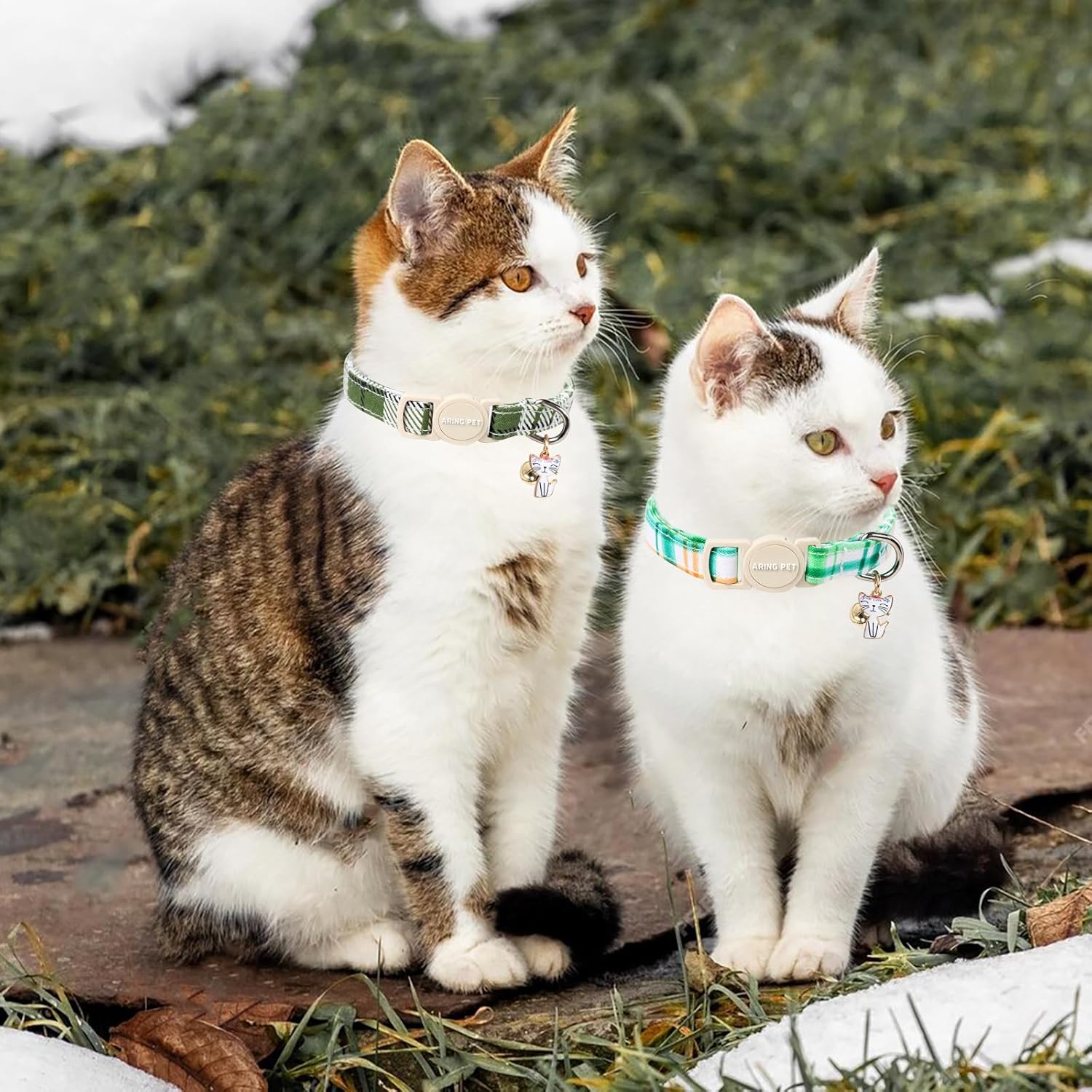 - SAFETY:❤Our cat collar with bells adds extra protection, alerting you to your cat's whereabouts.❤Breakaway buckles design, simply give it a tug, and it swiftly releases, provides more safety for our pets.