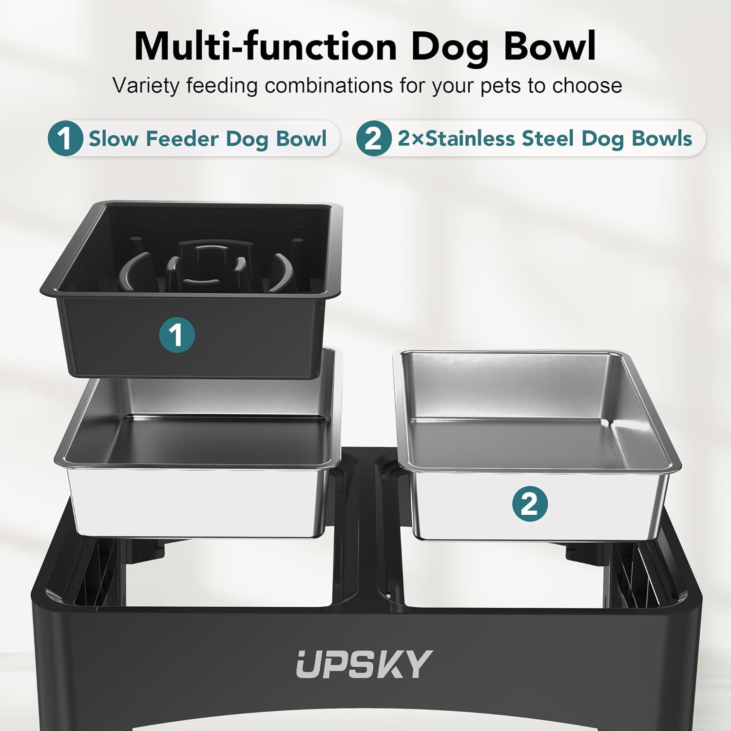 UPSKY Elevated Dog Bowls, 4 Height-Adjustable Raised Dog Bowl Stands with 2 Stainless-Steel Water Bowls, Slow Feeder, Anti-Slip for Small & Medium Dogs