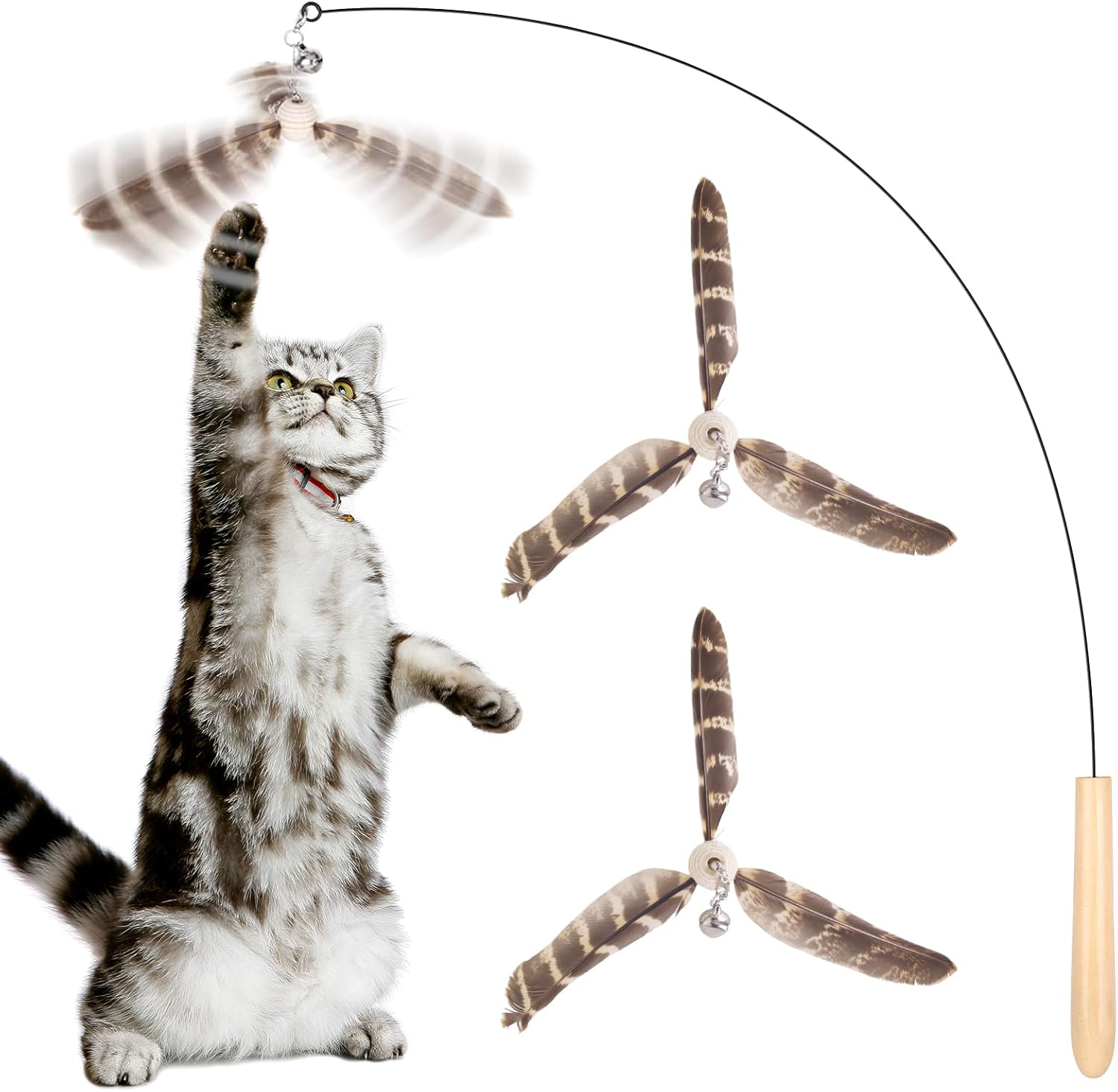 - With 3 Natural Feathers Refills: These natural feather refills feature a propeller action that mimics the natural motion of a bird, providing safe stimulation for cats to grip and bite. With 3-pack set ensures long-lasting entertainment for your cat.