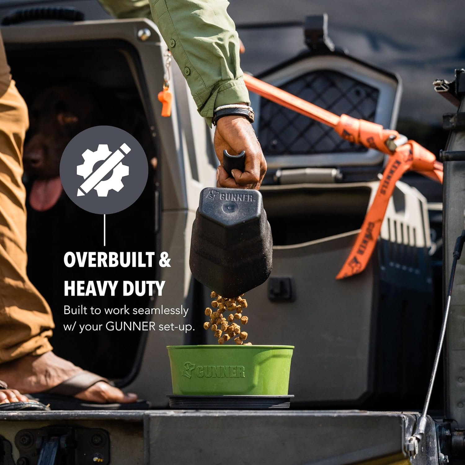 - DURABLE MATERIAL: Crafted with the same heavy-duty material as our renowned Kennel Bowl, GUNNER's Dog Food Measuring Scoop withstands the rigors of daily use. Its ergonomic patent-pending design, coupled with a solid, no-slip grip, provides ultimate comfort and control, making portioning effortless and precise. This scoop isn't just a standalone product; it's designed to seamlessly complement our Food Crates and also the Kennel Bowl, creating a cohesive feeding system for your furry companion.