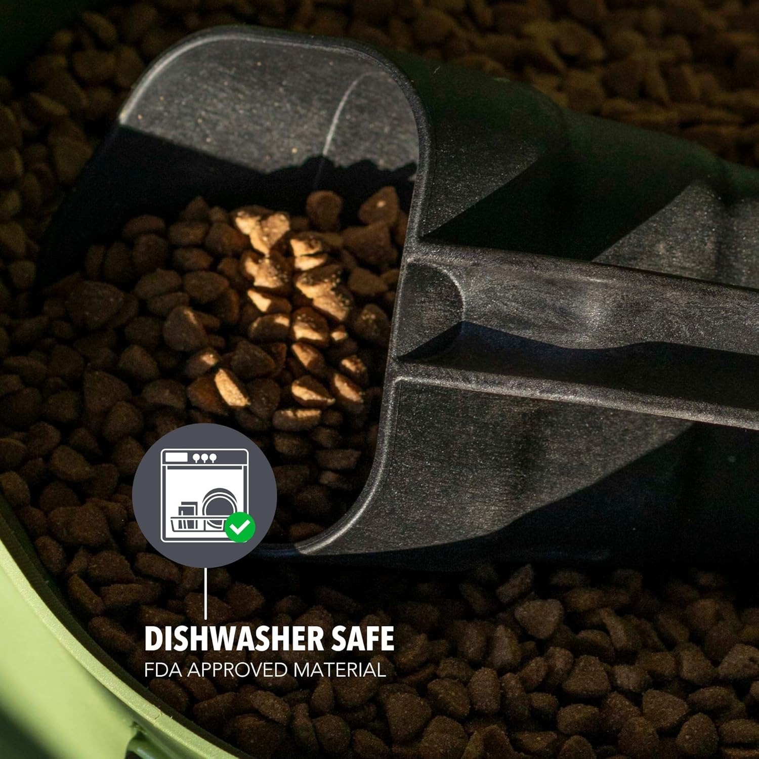 - THE PERFECT TOOL FOR PET OWNERS: This dog food scoop is designed to hold up to 3 cups of dry kibble, making it ideal for measuring out your dog's daily portions with ease. Not only is it convenient, but it's also incredibly easy to use. The scoop features a sturdy handle that provides a comfortable grip, making it effortless to scoop and pour. Plus, Its stacked design allows for perfect proportions every time, making feeding precise and seamless.