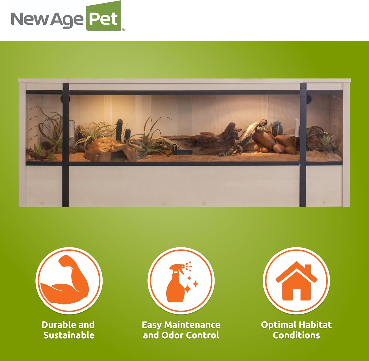 New Age Pet ECOFLEX 60-Inch Mojave Reptile Lounge in Maple- Durable, Moisture-Resistant Wood Plastic Composite Habitat with Vented Side Panels, Removable Sliding Glass Doors & Lock