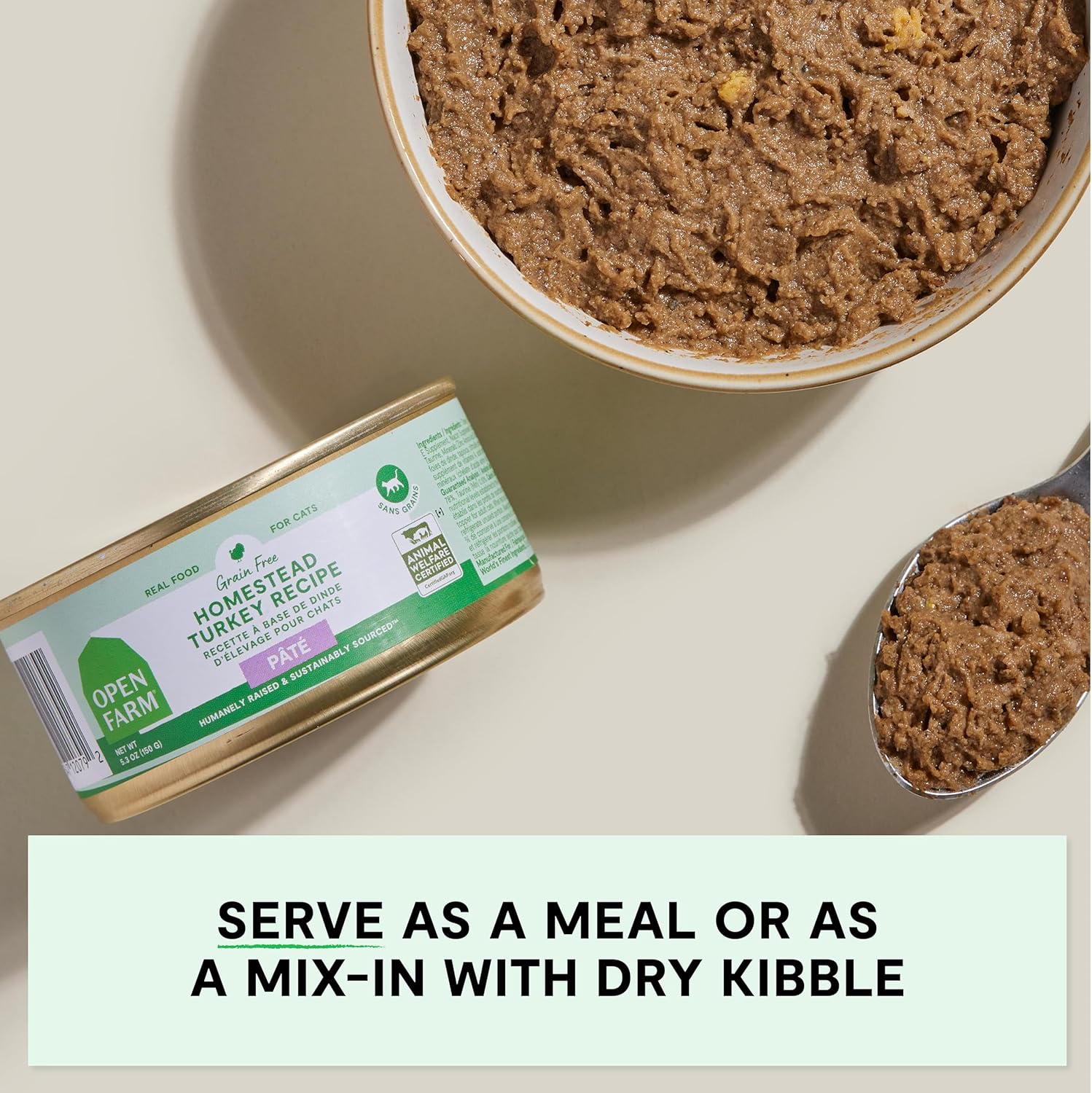 Open Farm Canned Cat Food, Pate for Complete & Balanced Nutrition, Grain Free and Legume-Free Wet Cat Food, Homestead Turkey Recipe, 5.3oz Cans (Case of 12)
