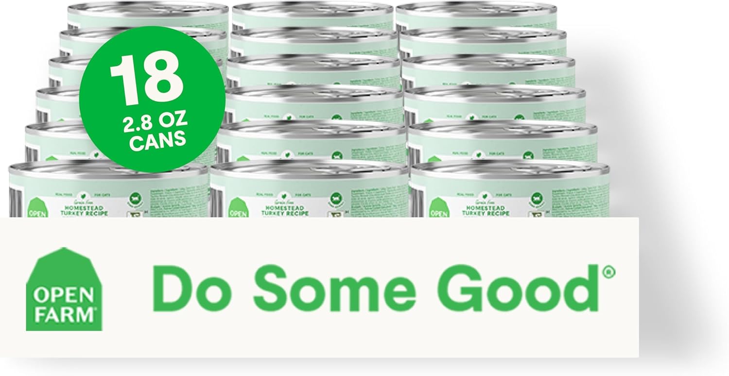 Open Farm Canned Cat Food, Pate for Complete & Balanced Nutrition, Grain Free and Legume-Free Wet Cat Food, Homestead Turkey Recipe, 2.8oz Cans (Case of 18)