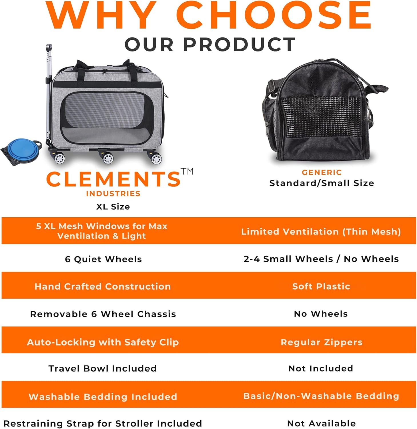 - BUILT TO LAST - Durable construction with auto locking zippers and safety clips, plus a foldable design for easy storage when not in use, making it an excellent rolling pet carrier or even a double cat carrier.