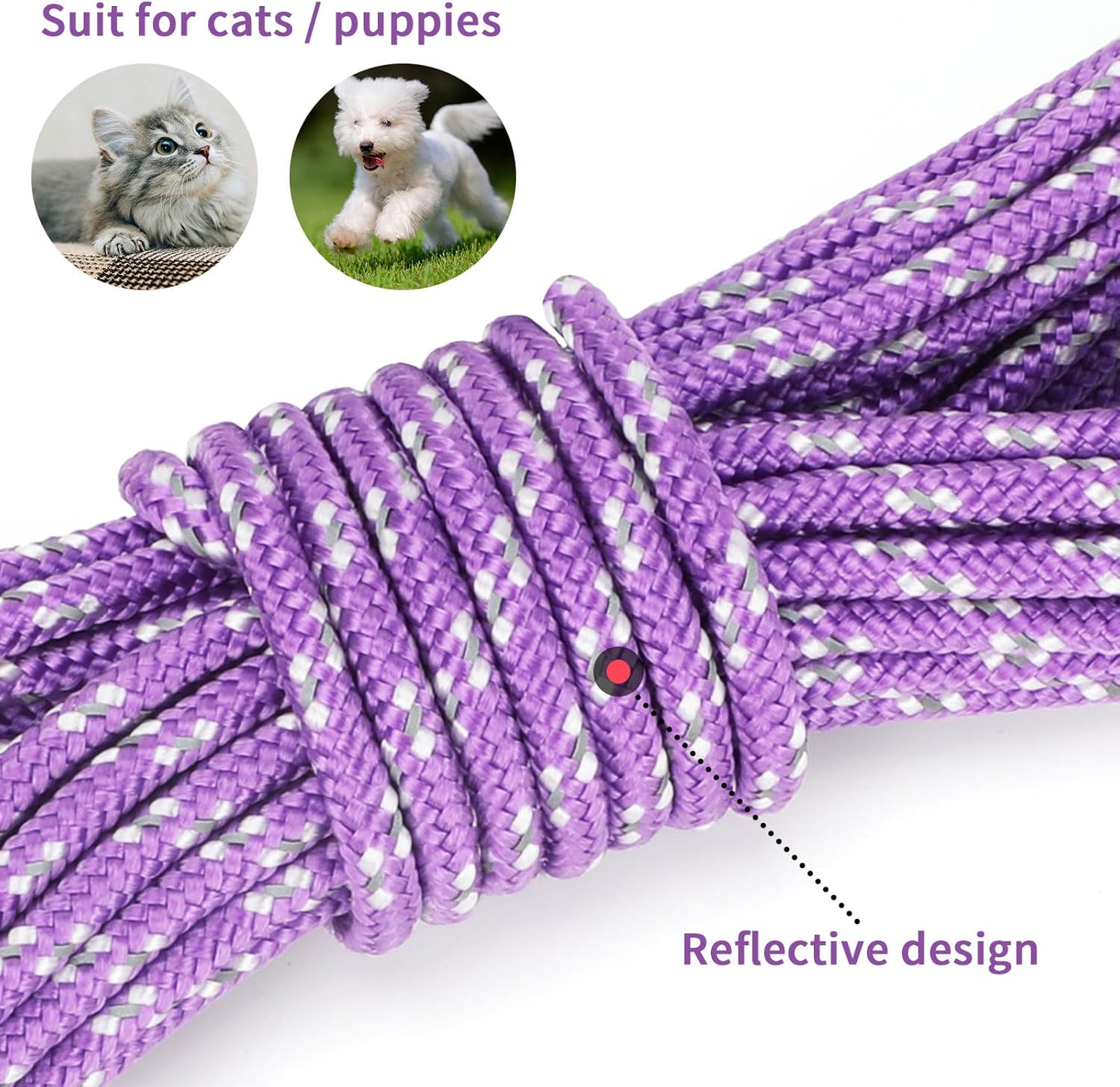 Rypet Reflective Cat Long Leash - 30 FT Escape Proof Walking Leads Yard Long Leash Durable Safe Personalized Extender Leashes Traning Play Outdoor for Kitten, Puppy, Rabbit and Small Animals(Purple-M)