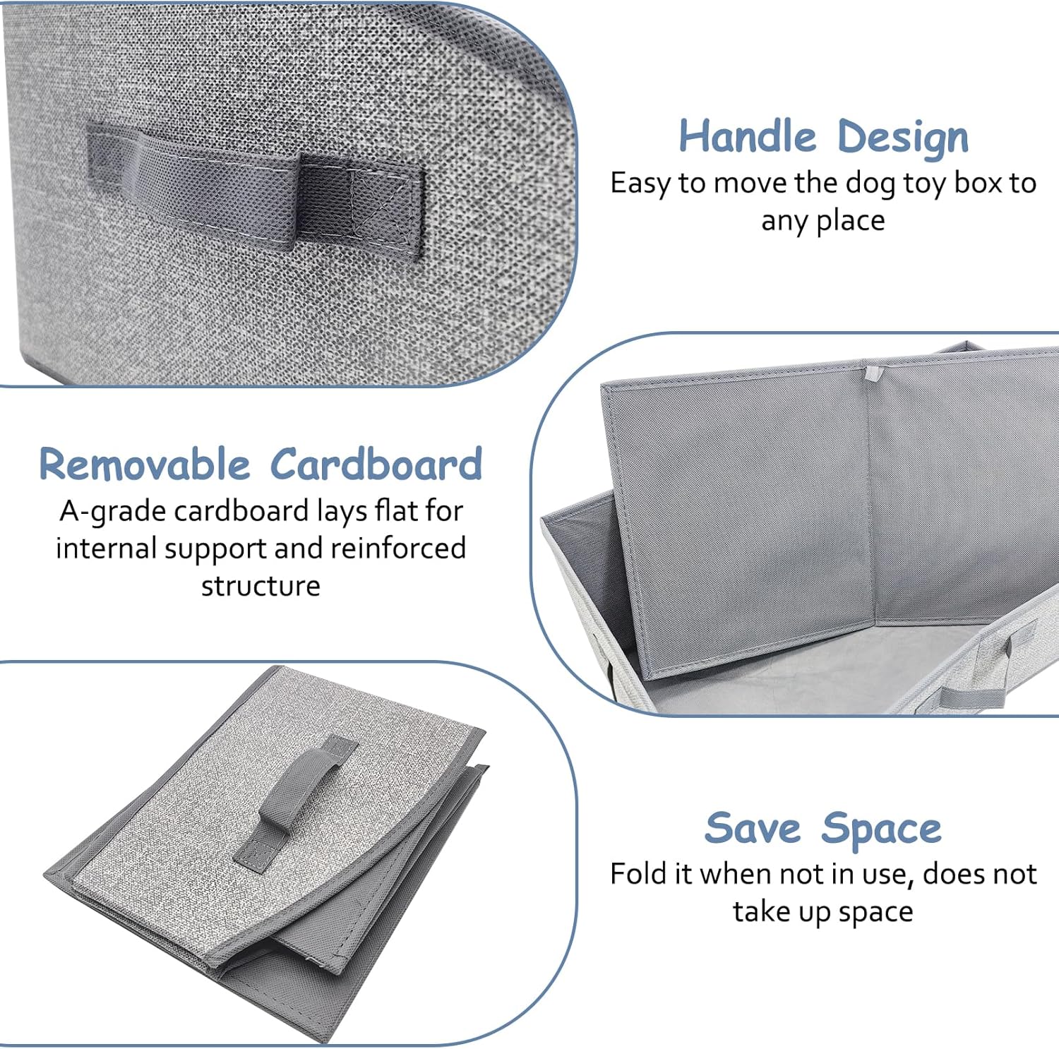 - Folding Design: Dog toy bin measures 20 "x11.6 "x8.2" before folding and only 11.4x9.4x1.18 inches after folding, when not in use, simply fold it up and store it easily in any corner to make the space look organized and easy to carry with you on the go