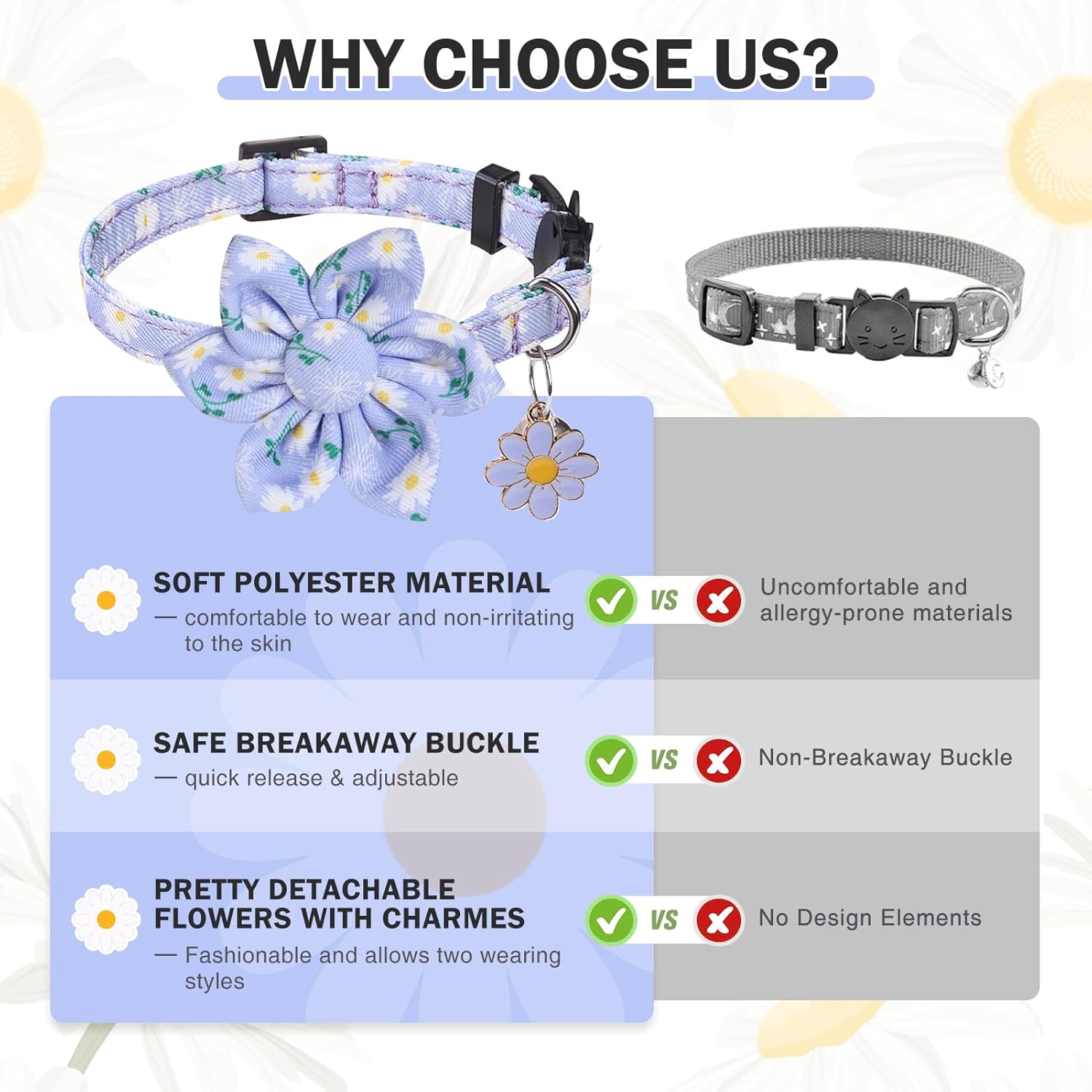 - Soft Material: These cute cat collars are made from high quality polyester material, which is soft, durable and breathable. It is so soft and skin-friendly that it will not scratch your cat, making your cat comfortable to wear every day