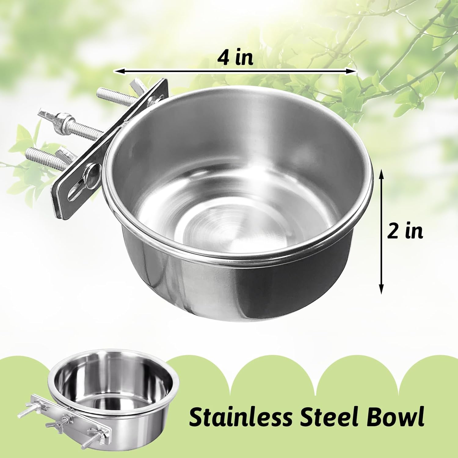 - The Bird Bowl Is Safe: All household items stainless steel food and water cups. Feed your feathered friend in durable
