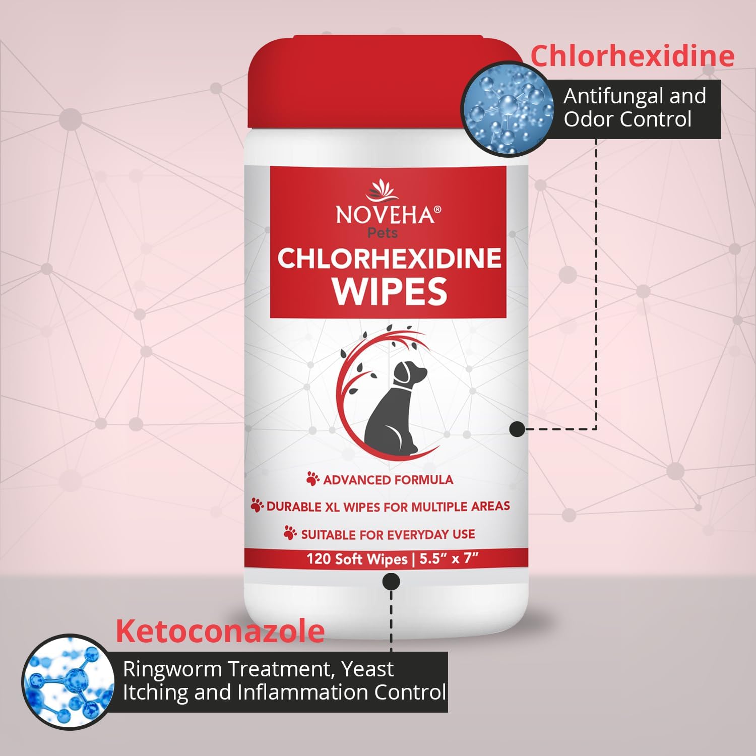 NOVEHA 120PCs XL Formulated Pet Wipes for Dogs & Cats - Safe for Facial & Finger Folds, Underarms, Groin, Hot Spots, Redness & Skin Relief, On-The-Go Size 5.5" x 7"