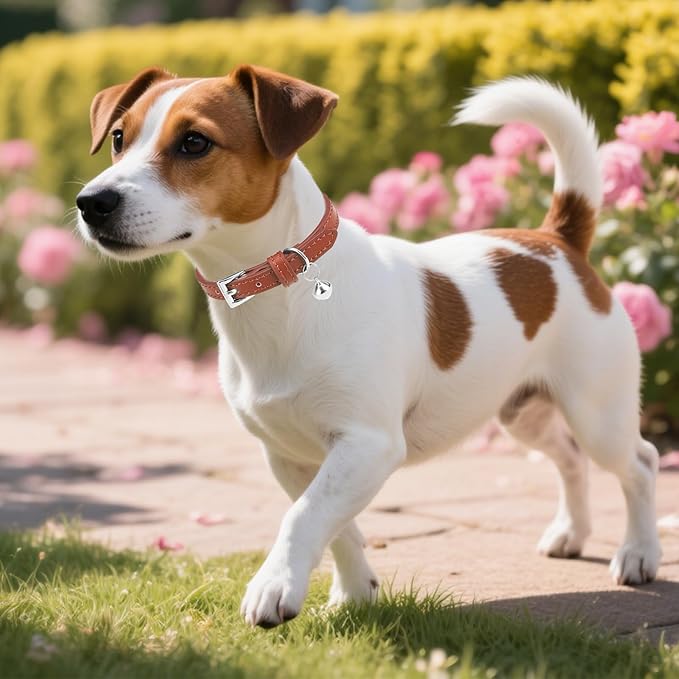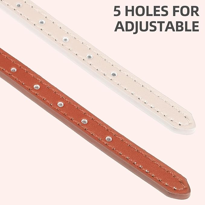 PUPTECK 2 PCS Soft Genuine Leather Cat Kitten Collar with Bells Adjustable for Girl Boy Cats Puppy - Cream, Brown