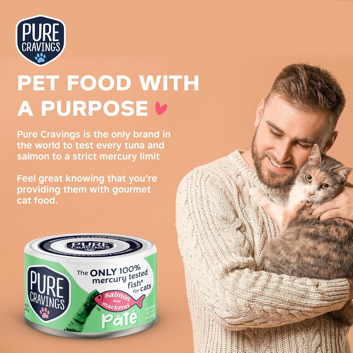 Pure Cravings Salmon and Mackerel Pate, Canned Wet Cat Food, 100% Mercury-Tested, Moist Can Fish, Grain-Free Protein, Non-GMO, 12 Pack