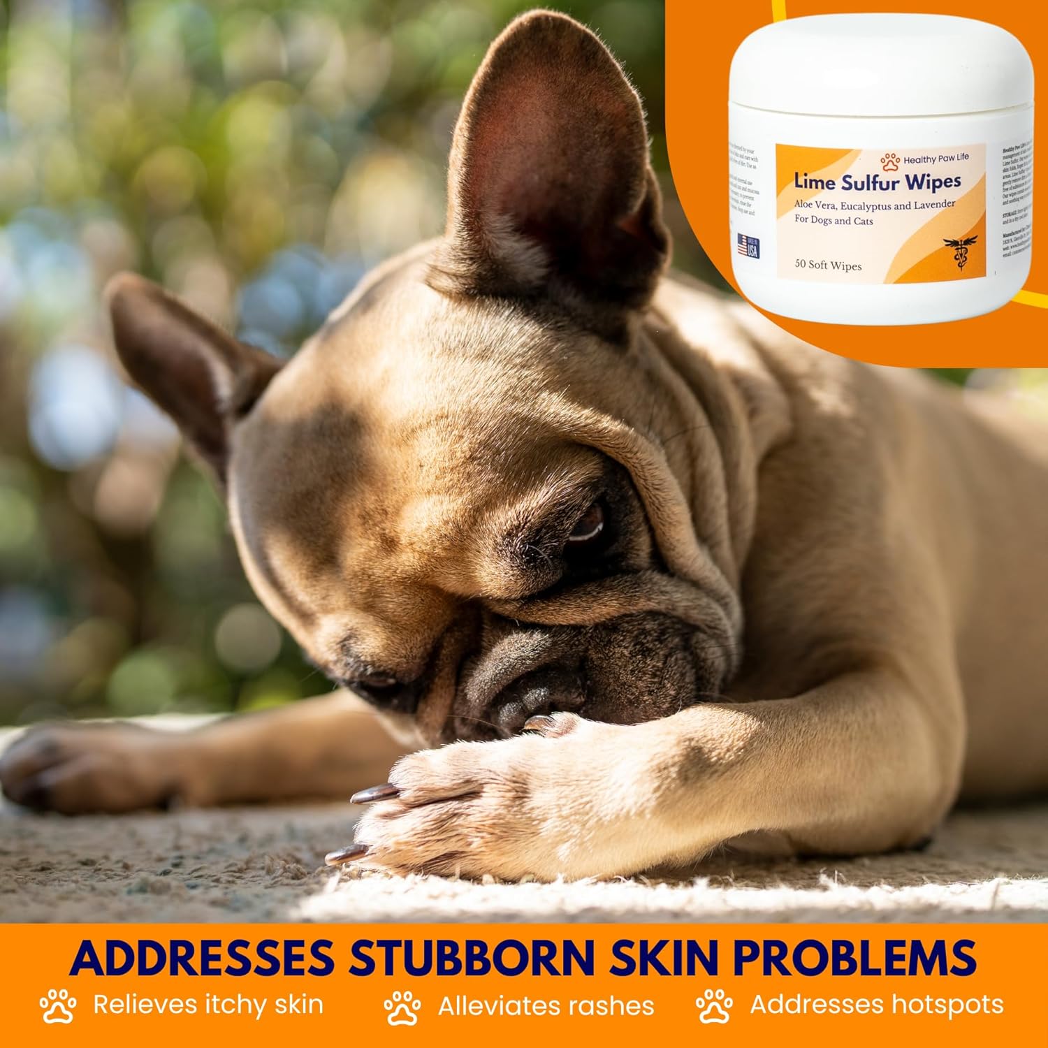 Healthy Paw Life Lime Sulfur Wipes - Relief for Itching, Scratching, and Redness - Infused with Lime Sulfur, Aloe & Essential Oils - Skin Care Solution for Pets (50ct, 2" Skin Soothe Wipes)
