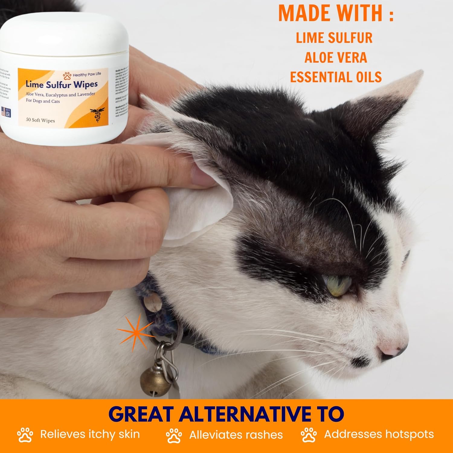 - Safe and Gentle Formulation: Harnessing the power of a blend of lime sulfur and essential oils, our wipes offer a powerful ancient and holistic solution for your pet's skin issues.