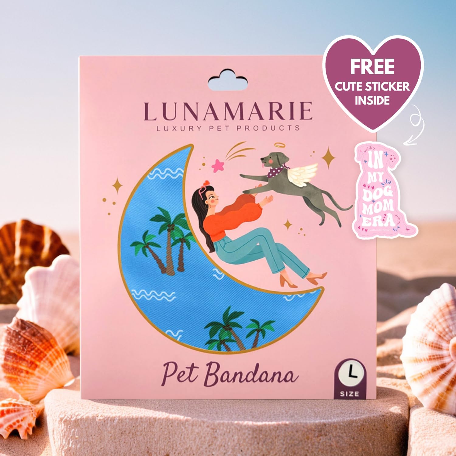 LunaMarie - Luxury Pet Birthday Bandanas -Premium & Silky Poly Fabric | 100% Handmade | Custom Shape Dual Layered (Playa Azul, Large)