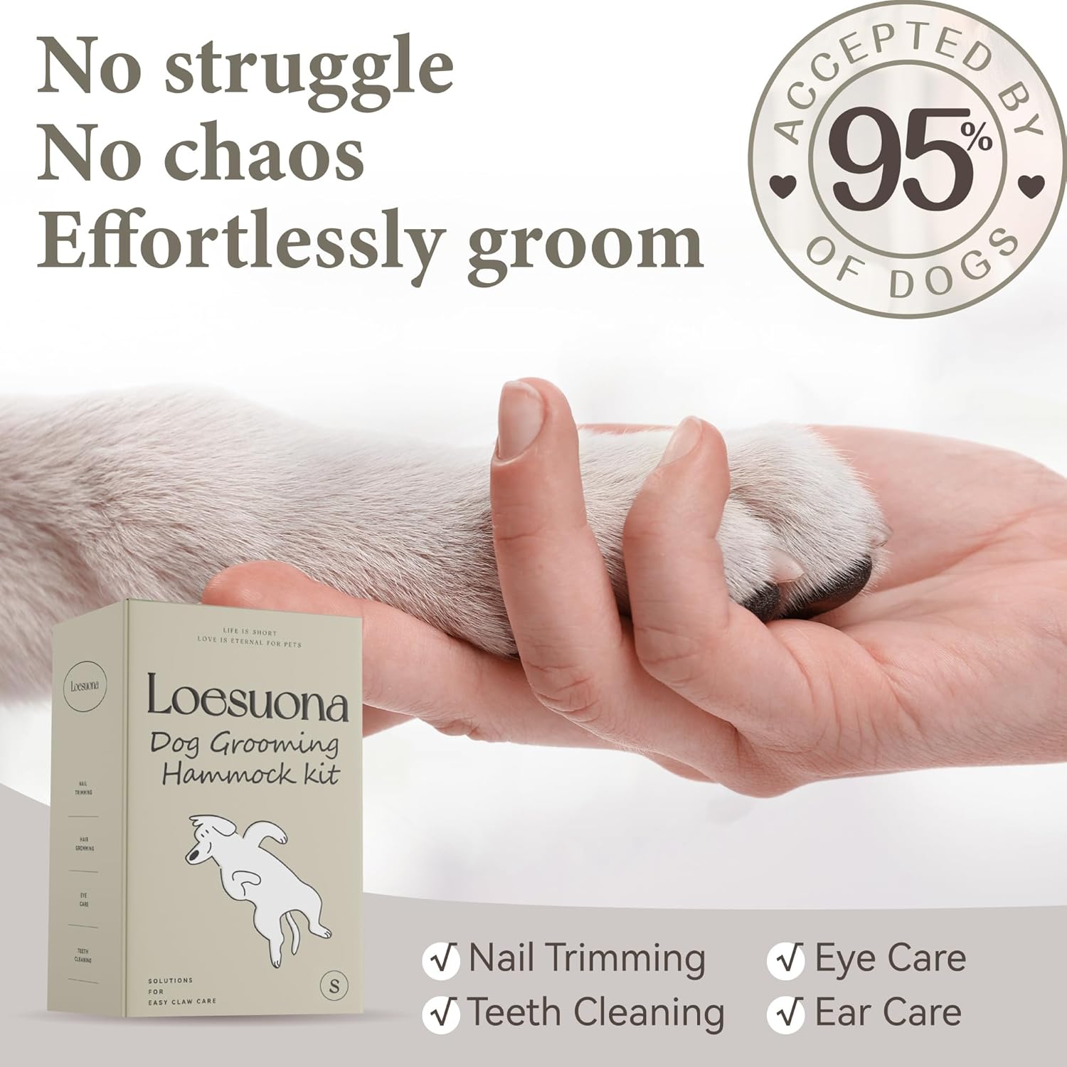 - 【 Professional Pet Grooming Bag 】includes dog hammock x1, carabiners x2, dog nail clippers x1, nail file x1, adjustable straps x2, finger toothbrush x2,Steel Comb x1 These items enhance the dog nail hammock, making nail trimming stress-free and easy.