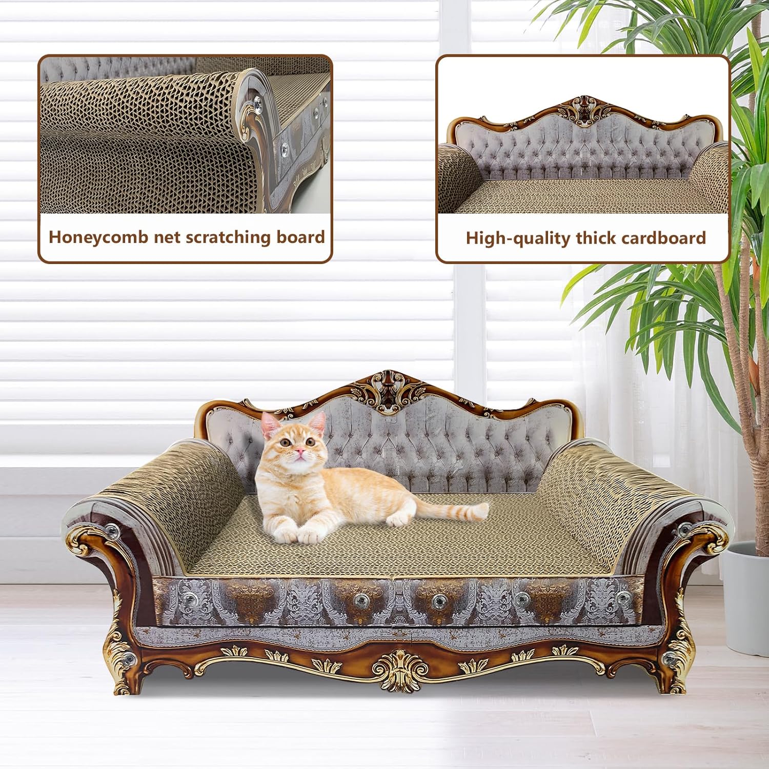 Luxury Cardboard Cat Scratcher Sofa Couch Bed, Couch Shaped Scratching Board, Scratch Lounge with Catnip, Cat Scratcher for Indoor Cats Grey
