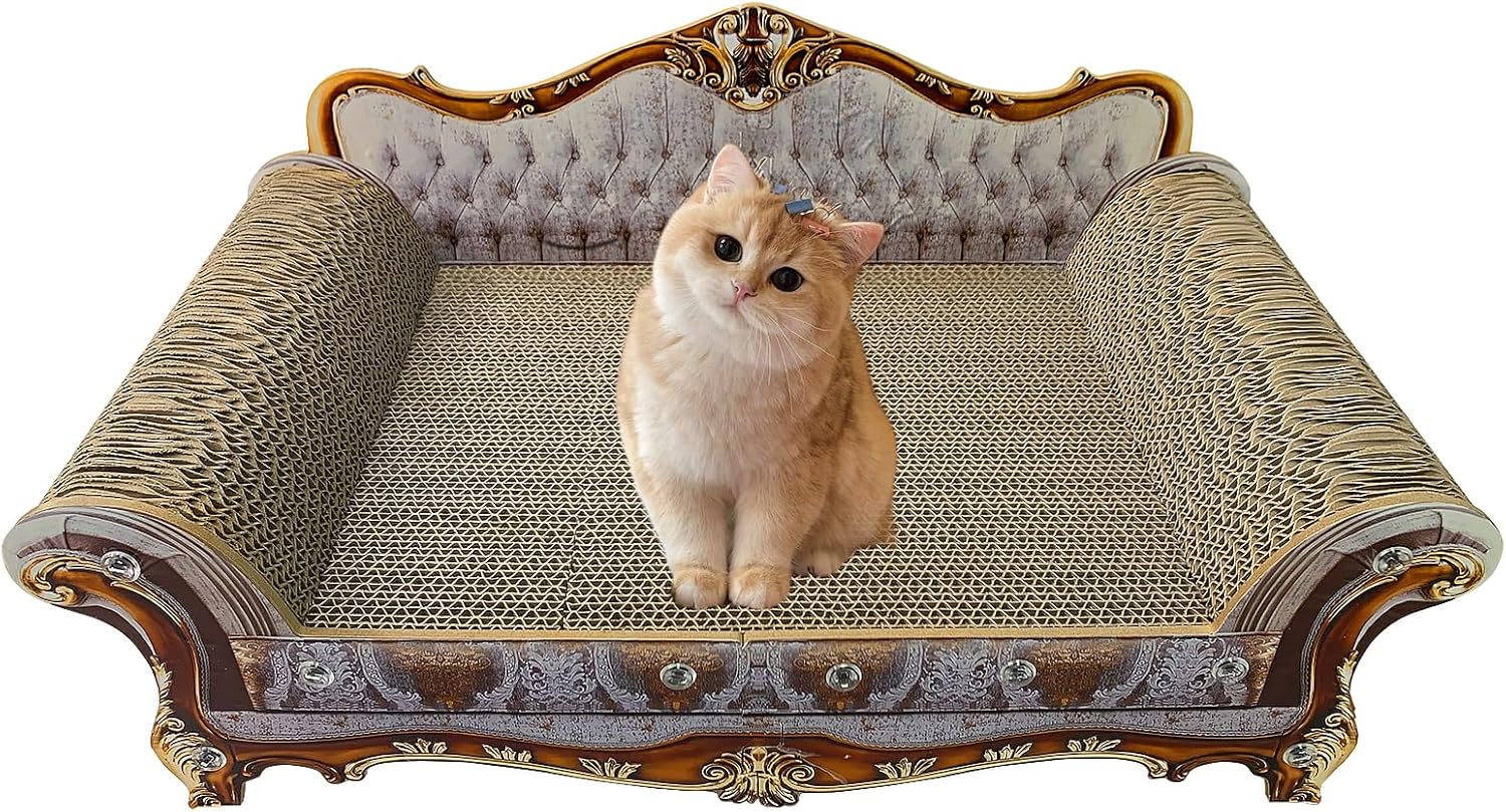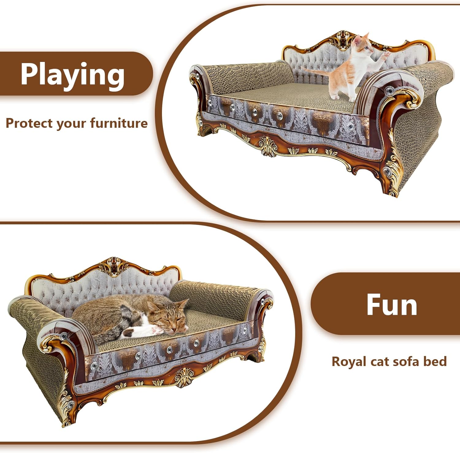 - Bonus Catnip & Cat Play Kingdom: Each cat sofa scratching cardboard comes with a bag of catnip so it’s no need to worry about “cats won’t use” problem. Our cat sofa cardboard is a unique cat furniture which is suitable for any home scenes. Let cats enjoy this royal cat sofa scratching board