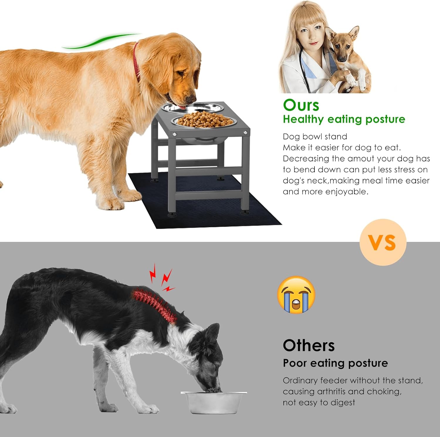 - 【EASY TO SET-UP】- Taking only 2 minute to assemble, the dog bowl set includes two food-grade stainless steel dog bowls (1200ML), a splash proof mat (16 x 24 inches), and other assembly accessories