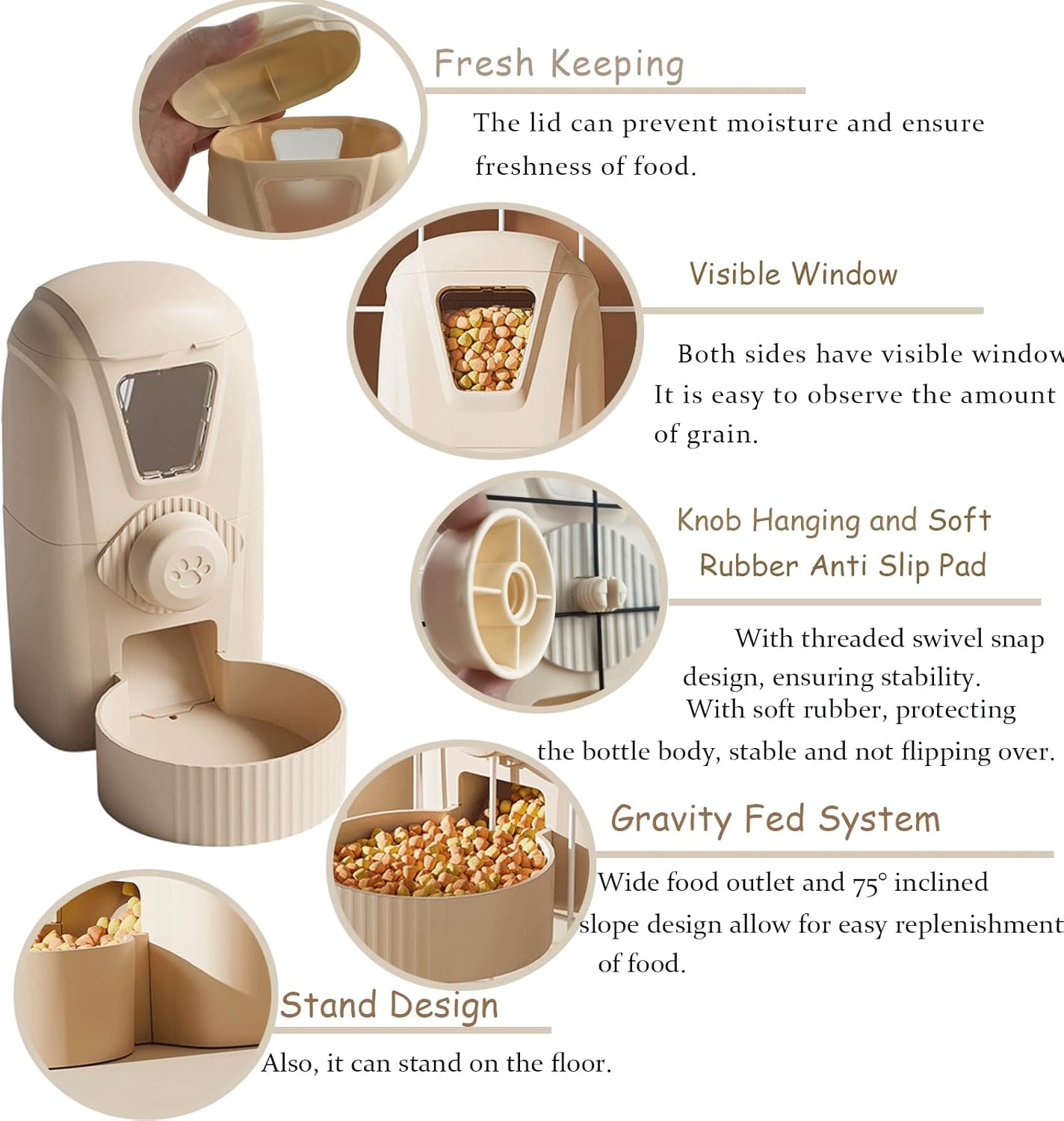 - 【Knob Hanging Cage Design】:With a simple twist-lock mechanism that makes it easy to install and take out.It is designed for pets locked in the cage. When adding food and water, it can be added outside directly.The hanging design makes good use of space, but also can alleviate the problem of neck discomfort caused by pet drinking water with head up or down. The design of the button is suitable for most medium small pet cages, which can be installed inside and outside the cage. And also, it can be placed flat on the floor, with anti slip design, do not worry about tipping over