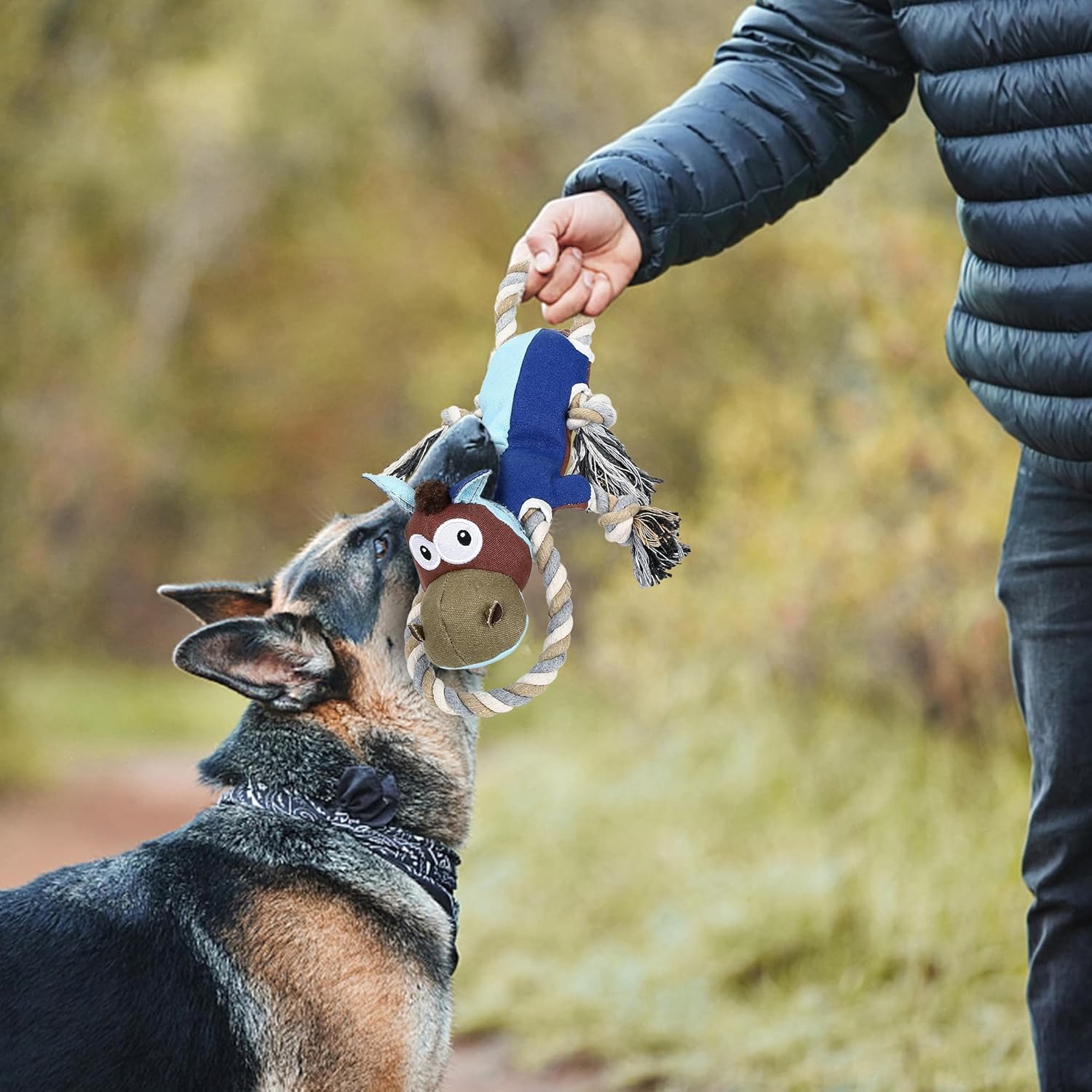 - 【Entertainment & Relieve Anxiety】These tug of war dog toys are super soft,cuddly and are a popular choice for games of indoor fetch,or just to keep your pup company. These squeaky toys for large dogs could relieve the depression,boredom and anxiety of your dog.