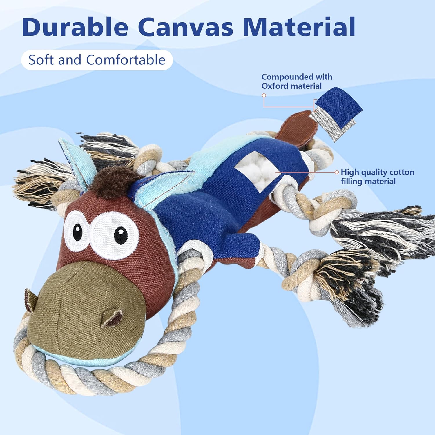 - 【Unique Design】The dog chewy toys are designed in the shape of a donkey, perfect for puppies,small,medium and large dogs. The eyes nose and mouth of the stuffed dog toys are hand embroidered. Compared with other craft, embroidery makes the toy more vivid and extremely long lasting.Besides,IOKHEIRA dog toys are machine washable , not fade or be out of shape.