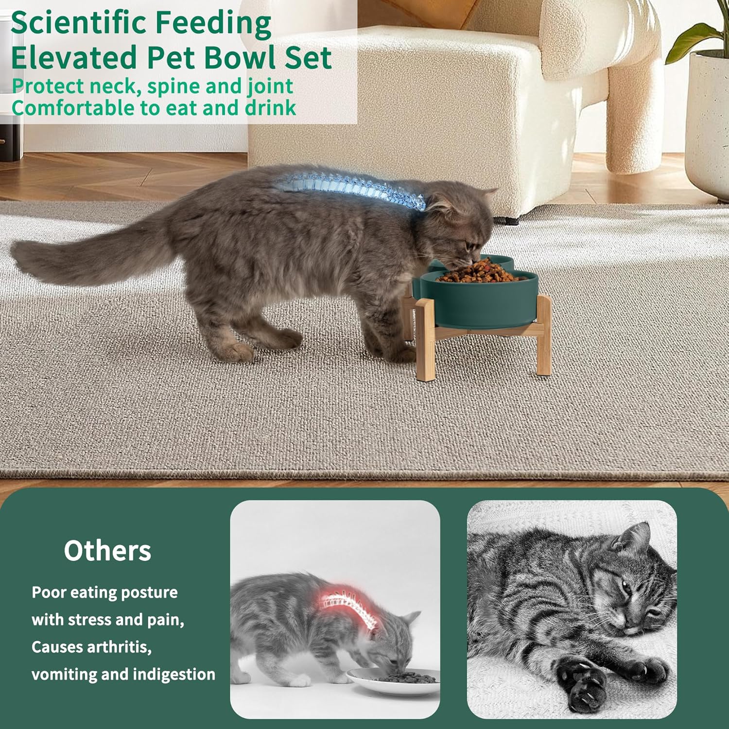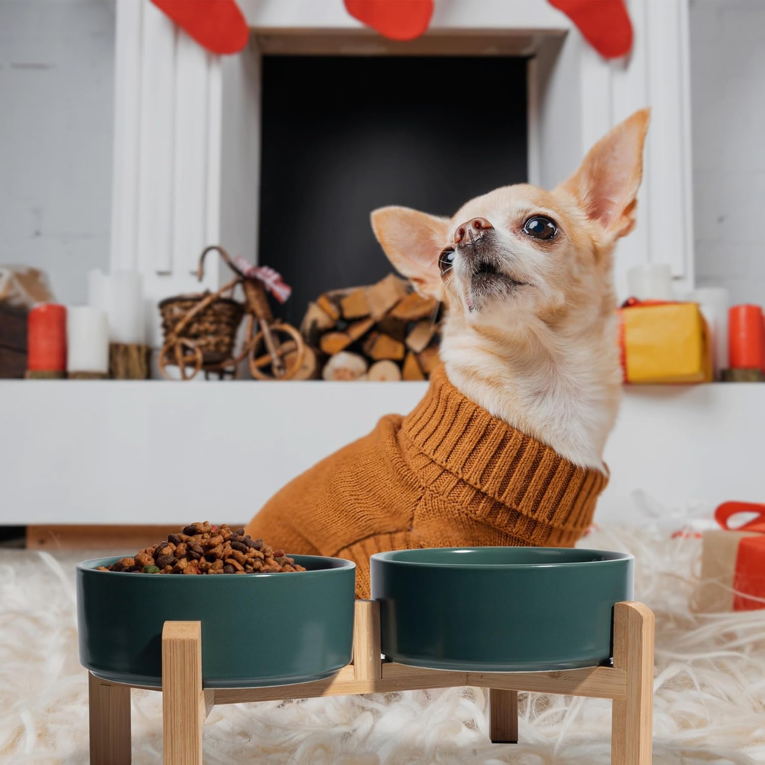 - Anti-Slip and Anti-Tipping: Each leg of the bamboo stand is equipped with rubber pad stickers to prevent the bowls from sliding when pets eat. And the thick ceramic dog dish bowl is heavy enough and stable enough, not easy to pushed down by naughty pets.