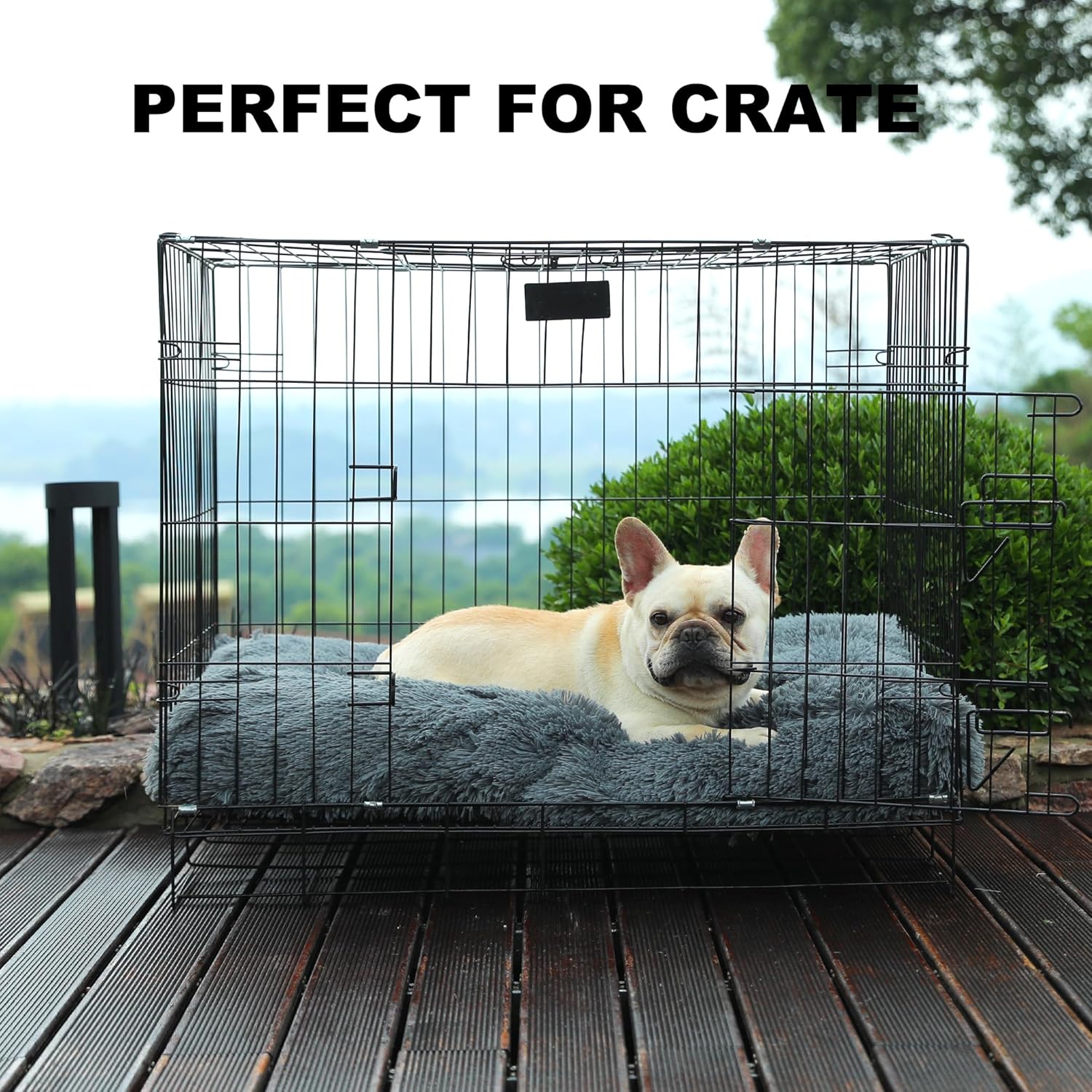 - Fluffy & Waterproof faux fur fabric: Made with luxurious faux fur fabric,our dog kennel bed provides a soft and cozy touch.Your furry friends will feel calming and safe when resting on this dog crate cushion.And the fabric features a waterproof backside lamination,preventing the stuffing safe from pee or water