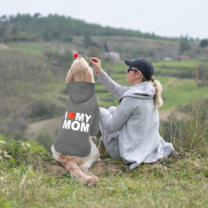 GreenJoy Dog Sweater Dog Hoodie Cold Weather Dog Coat Hooded Sweatshirt for Puppies,Cats, Small Medium Large Dogs (Grey(I Love My Mom), Medium)
