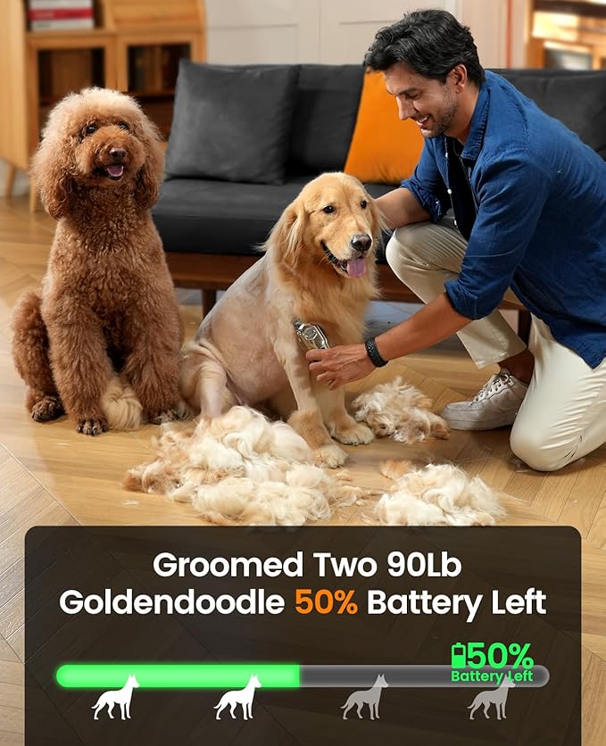 - ๐๐๐๐ก๐๐ซ๐ ๐๐๐๐ฅ๐ & ๐๐จ๐ฐ๐๐ซ๐๐ฎ๐ฅ: 6,800 RPM motor efficiently tackles dense coats. A single 2,000mAh charge provides 4 hours of cordless use, with a clear LED power display.